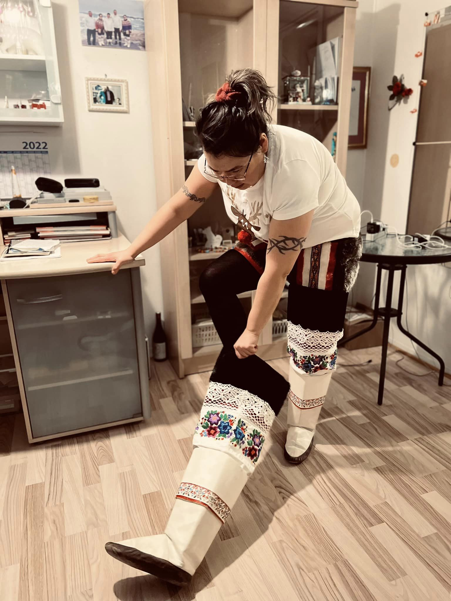 Sau khi lang thang ngắm Greenland, chị Thúy Anh ghé thăm gia đình của Laarseeraq. Mẹ và dì của cậu ấy đang chuẩn bị trang phục cho mùa Giáng sinh. Phụ nữ Eskimo có một bộ áo dài truyền thống để mặc vào dịp lễ này hoặc ngày kết hôn. Bộ quần áo được truyền từ mẹ cho con gái. Áo được làm bằng len nhiều màu còn quần và giày thì may bằng da của sư tử biển. Loại da này tuy cứng nhưng rất ấm, không thấm nước.