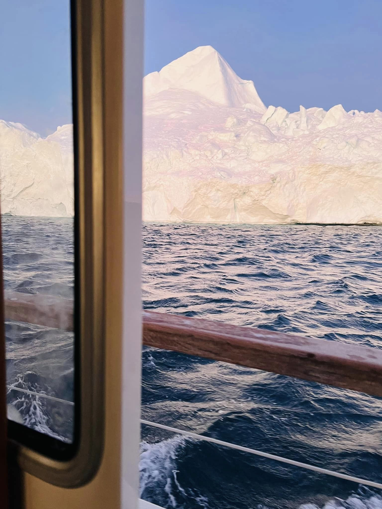 "Chiếc cano bé xíu lướt ra khỏi vịnh không mấy dễ dàng vì có rất nhiều tảng băng trôi ngáng đường. Mình có thể nghe tiếng băng vỡ vụn, tạo nên thứ âm thanh không mấy êm tai", chị Thúy Anh nhớ lại.