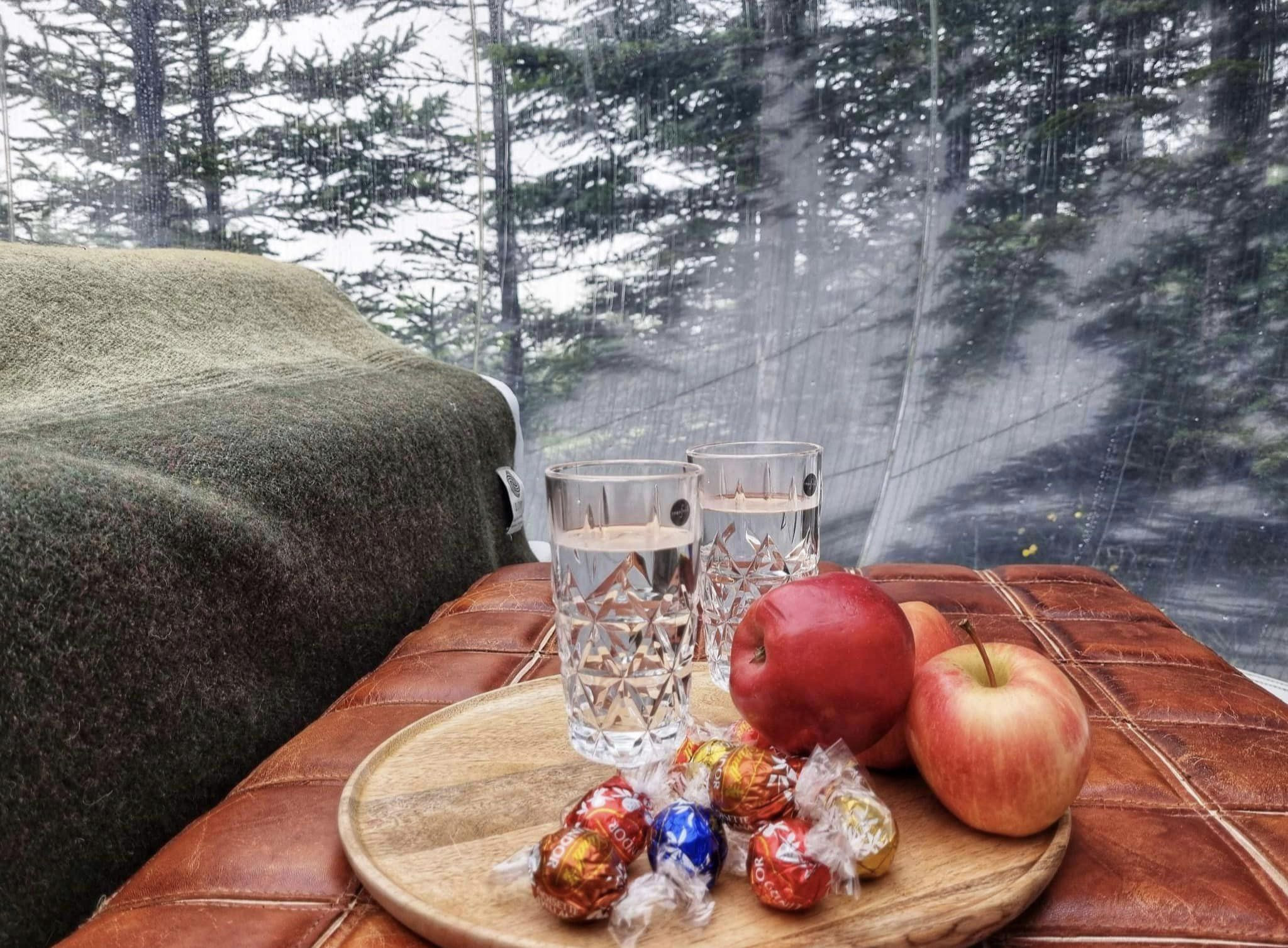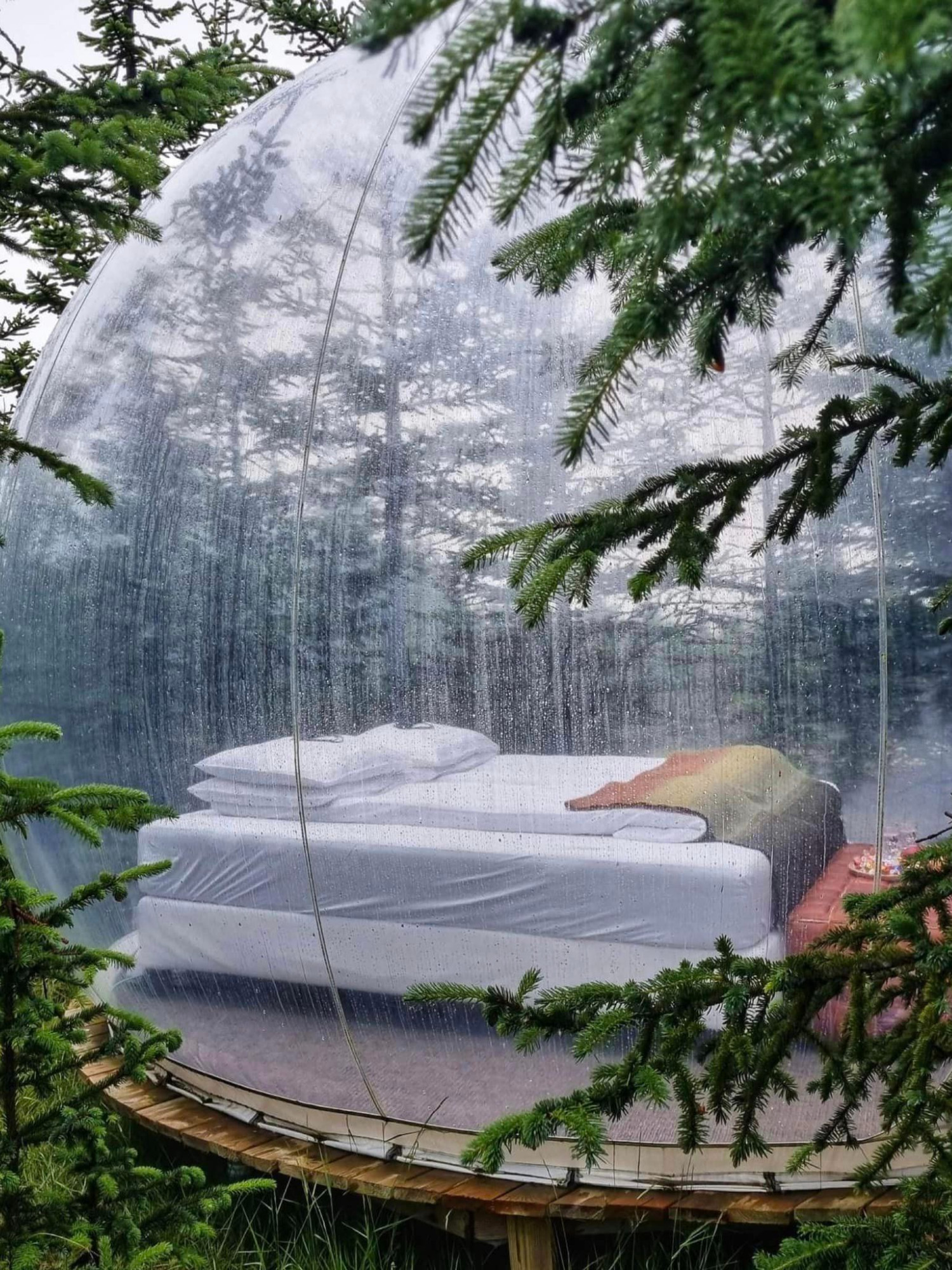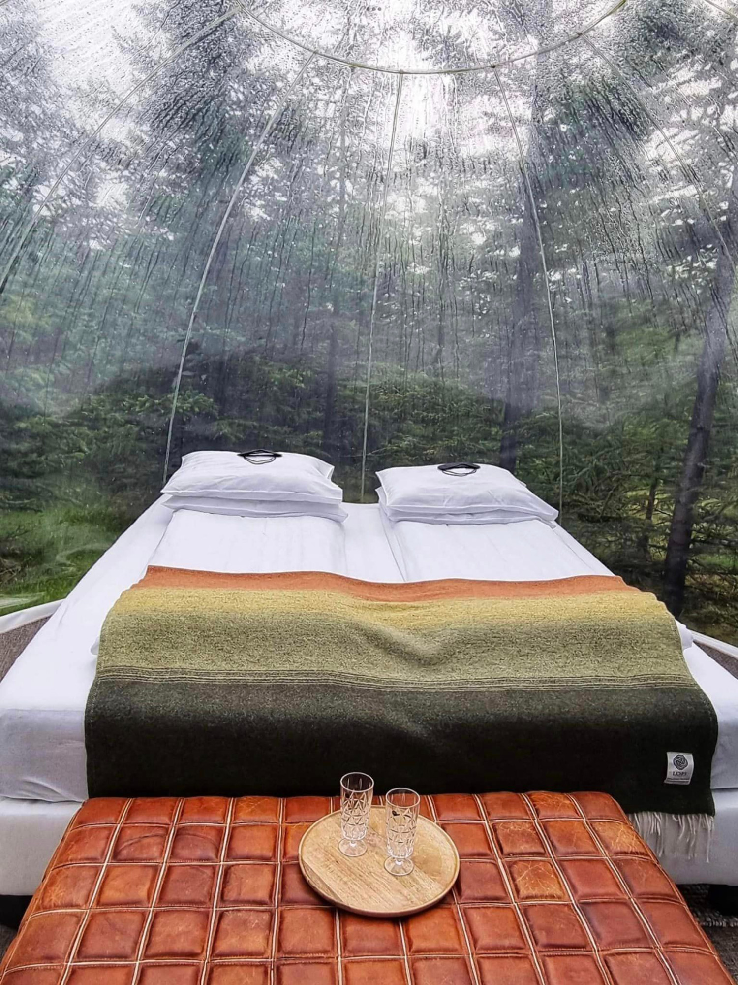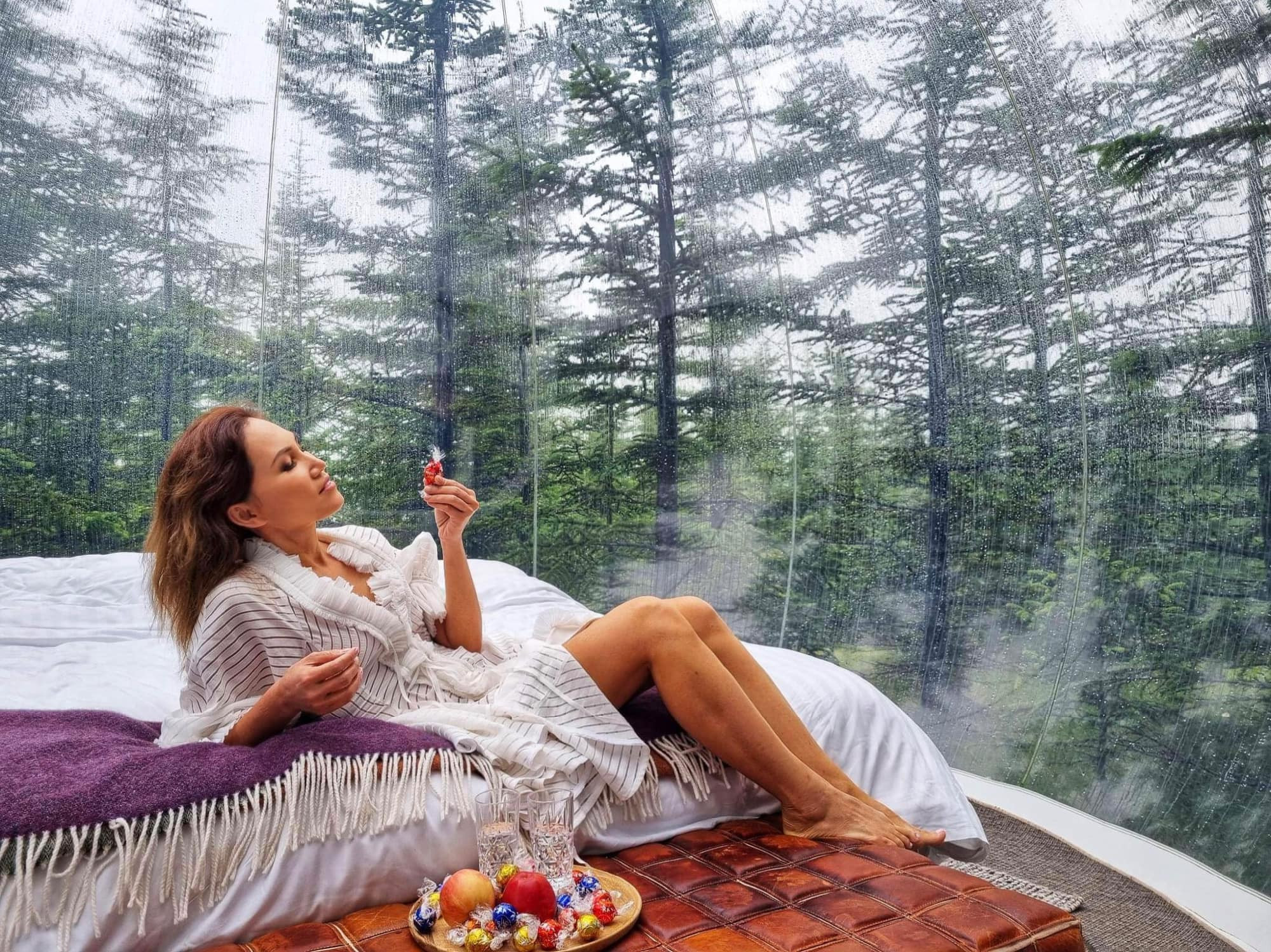 "Căn phòng khách sạn như một quả cầu pha lề khổng lồ, được bao bọc bởi đồi thông xanh mướt. Tôi cảm giác như căn phòng này bước ra từ trong truyện cổ tích vậy", chị Thúy Anh kể về căn phòng khách sạn "5 triệu sao" chị trải nghiệm tại Iceland.