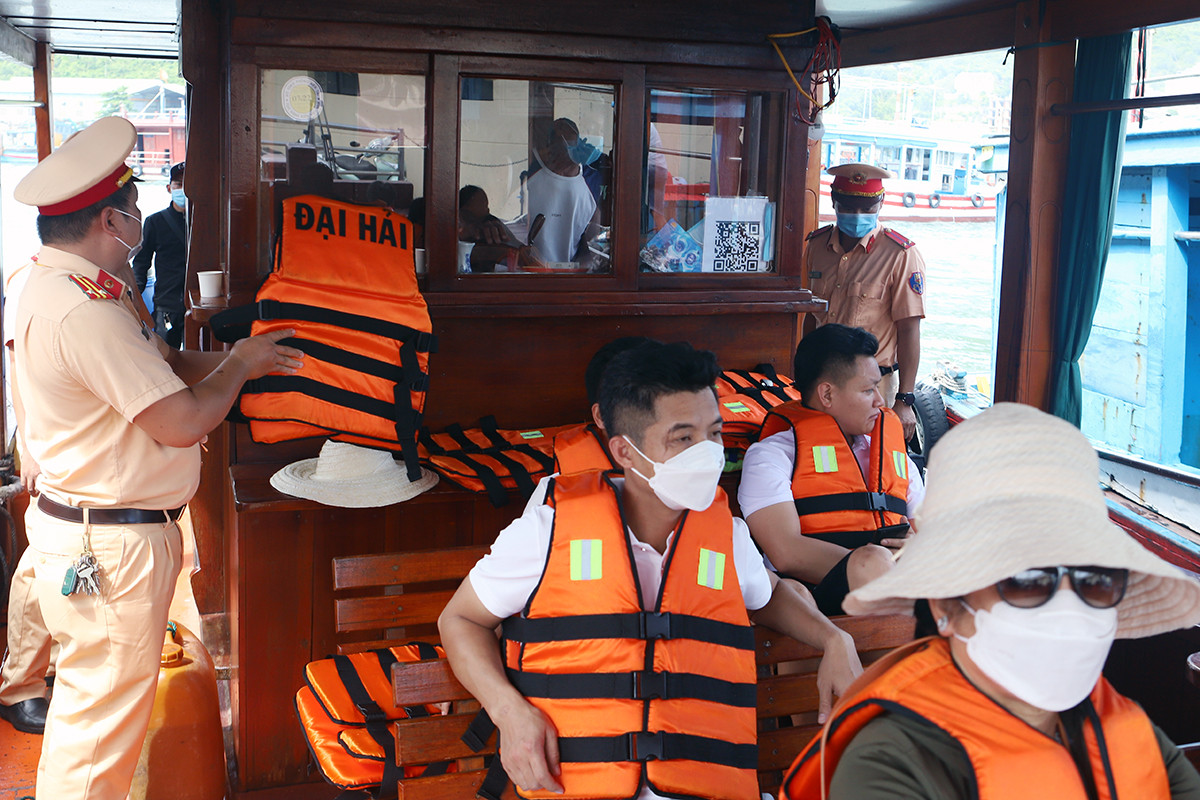 Trao đổi P.V VietNamNet, ông Trần Văn Phú - Trưởng bến tàu Du lịch Nha Trang cho biết, sáng nay có khoảng 3.000 khách du lịch đến bến tàu để đi tham quan các điểm du lịch trong vịnh Nha Trang. Lượng khách đông, đơn vị đã tăng cường nhân sự, nhắc nhở khách tuân thủ đeo khẩu trang khi chờ tàu và suốt hành trình tham quan.