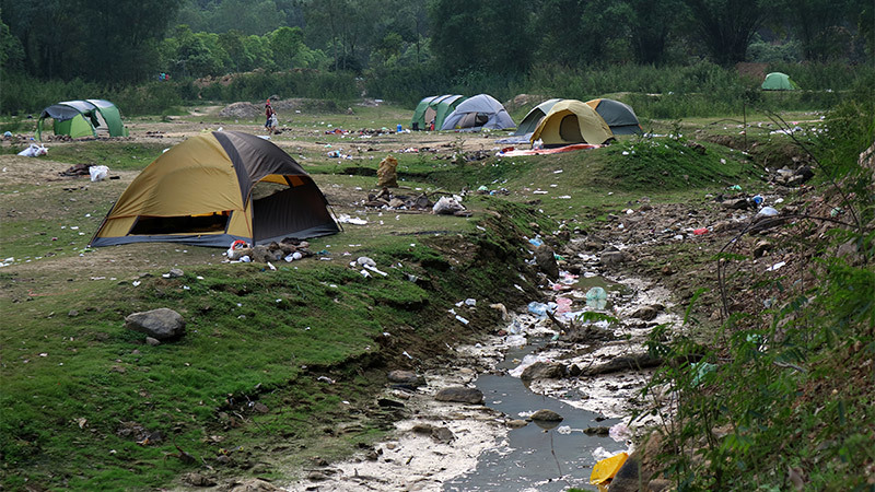 Hà Nội: Du khách hạ trại bên hồ Hàm Lợn ngập rác thải