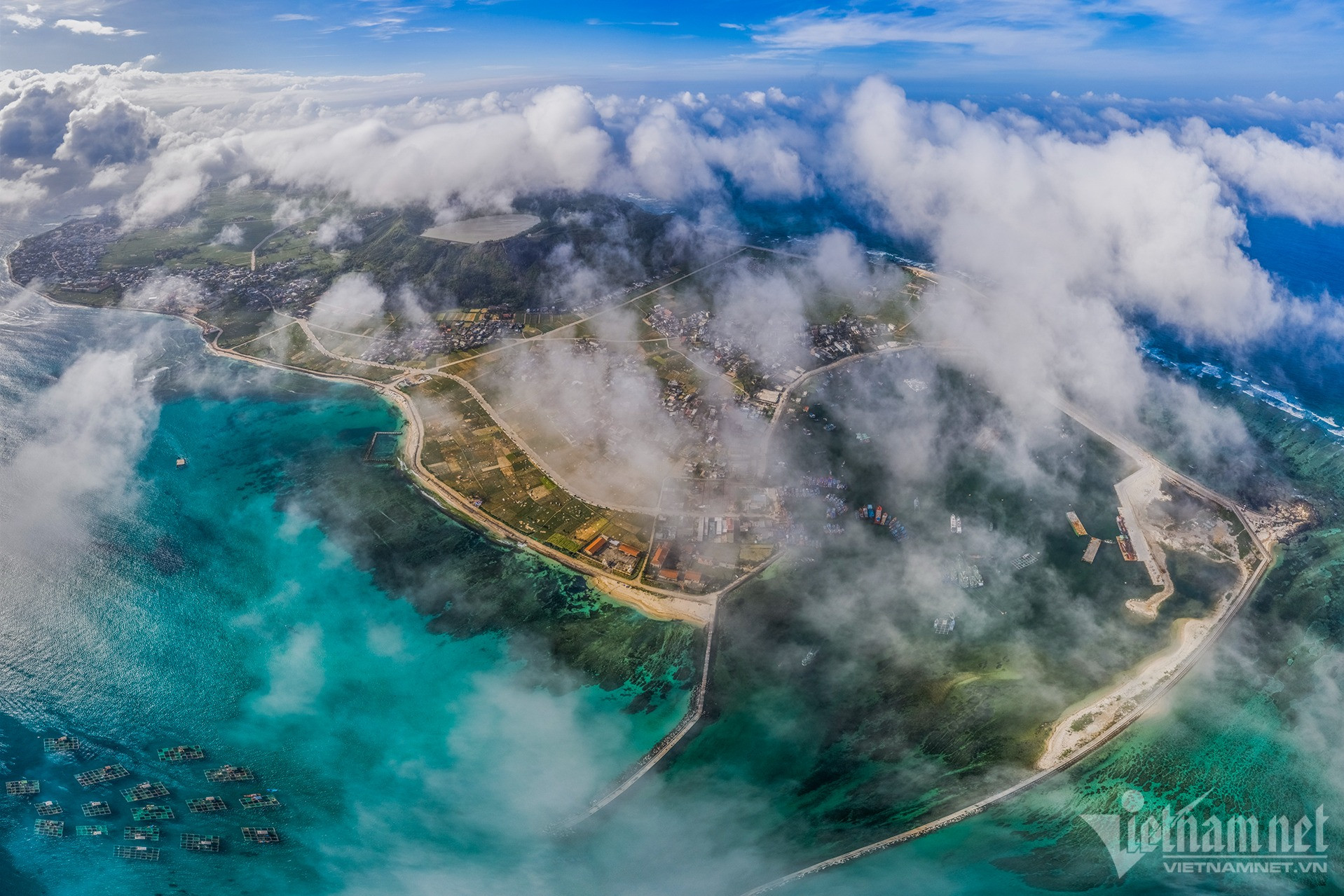 Khoảnh khắc hiếm: Mây trắng ôm trọn núi lửa triệu năm tuổi trên đảo Lý Sơn