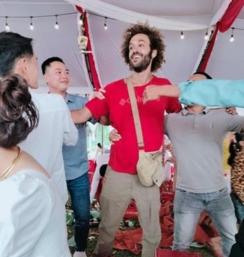 Trong chuyến du lịch của mình vào trưa 12/3, khi đi ngang một đám cưới đang diễn ra tại thôn Bến Tắt (xã Linh Trường, huyện Gio Linh, Quảng Trị), nghe tiếng nhạc rộn ràng trong đám cưới nên 3 chàng trai người nước ngoài không ngần ngại vào tham dự, chung vui.