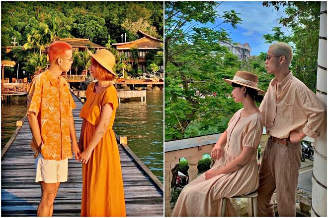 9 năm bên nhau, cặp đôi dành nhiều thời gian đi du lịch, khám phá các điểm đến như Đà Lạt, Nha Trang, Lý Sơn,... Thậm chí, họ còn đầu tư cả trang phục, kiểu tóc “ton-sur-ton” gây ấn tượng cho mỗi chuyến đi.