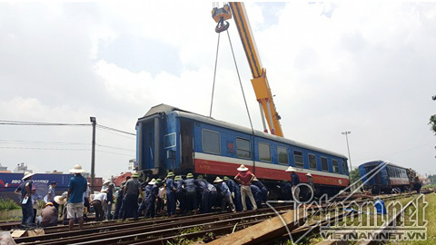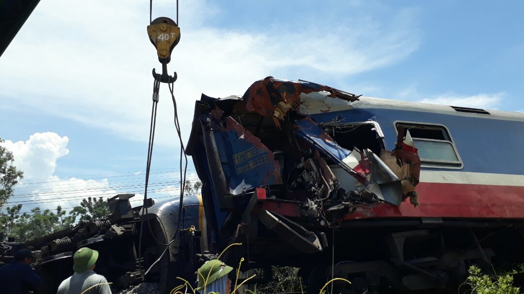 Ngành đường sắt đã điều cẩu chuyên dụng chạy trên đường sắt từ Vinh, Đồng Hới và Hà Nội vào giải quyết.