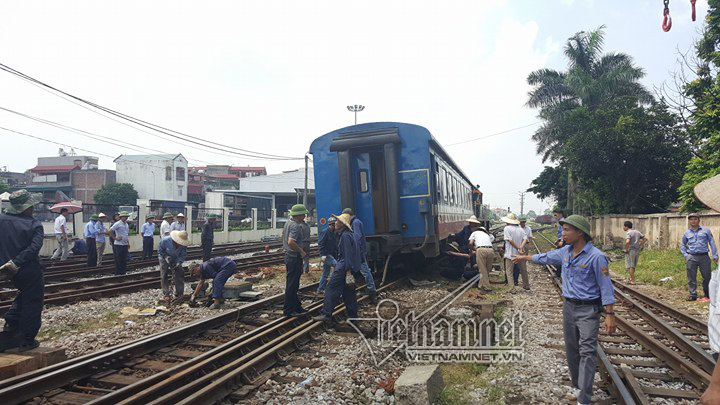 Tàu hỏa chở khách bị trật bánh ở Hà Nội