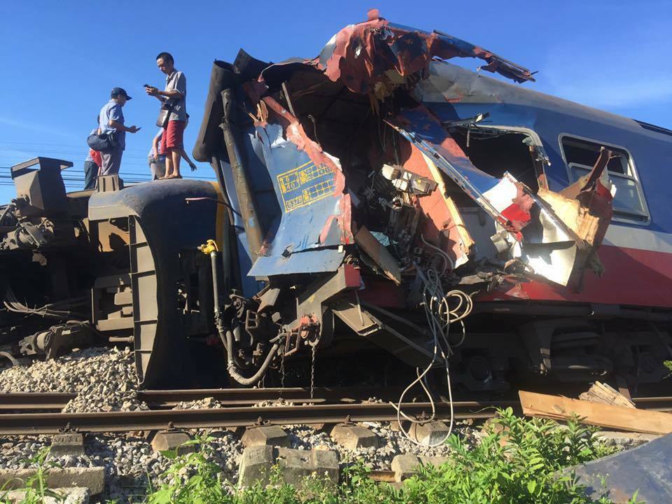 Cú tông mạnh khiến 1 toa xe cuối cùng bị lật ngang sang bên trái theo hướng tàu chạy, ra khỏi đường ray, 2 toa xe giáp nối bị trật bánh, đổ nghiêng.