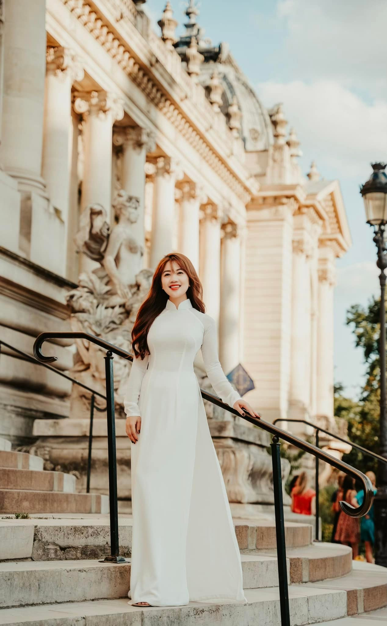 Đầu tháng 7, vì ông xã bận công tác, chị Hà Diệu Linh (sinh năm 1989, Hà Nội) một mình đưa con gái 6 tuổi sang Pháp thăm gia đình và du lịch. Đây là chuyến "xuất ngoại" đầu tiên của chị sau Covid-19. Từng khám phá nhiều quốc gia châu Âu nên trong lần trở lại này, hai mẹ con chị Linh chủ yếu tham quan Paris và các thành phố của Pháp. "Mình mang theo bộ áo dài trắng với dự định thực hiện bộ ảnh áo dài trong chiều hoàng hôn Paris làm kỉ niệm. Mình rất bất ngờ khi bộ ảnh nhận được sự yêu thích trên mạng xã hội", người mẹ 8x chia sẻ.