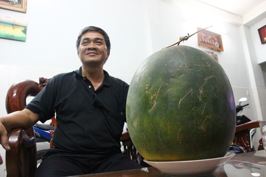 Đó là cặp dưa hấu được anh Phạm Văn Chơn (ngụ tổ 26, ấp Bình Phú, xã Hòa An, Chợ Mới, An Giang) mua về từ chợ Lấp Vò (Đồng Tháp) ngày 28 tháng chạp 2014.