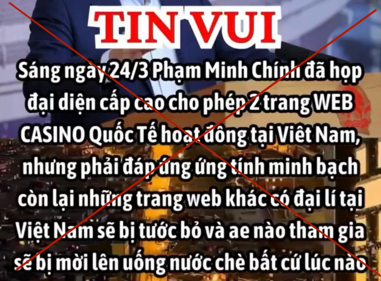 Cụ thể, Facebook này đưa hình ảnh Bộ trưởng Bộ Công an Tô Lâm đi kèm nội dung như “Bác Tô Lâm bảo sẽ cố gắng đẩy lùi tình trạng các trang casino lừa đảo ra khỏi Việt Nam và sẽ giúp đỡ cho tập đoàn PKxxx phát triển tại Việt Nam…”; hình ảnh Thủ tướng Chính phủ Phạm Minh chính cùng nội dung “Sáng ngày 24/3 Phạm Minh Chính đã họp đại diện cấp cao cho phép 2 trang web casino quốc tế hoạt động tại Việt Nam nhưng phải đáp ứng sự minh bạch…”, đi kèm là quảng cáo cho 2 trang cờ bạc, cá cược quốc tế PK0xxx và PPxxx.