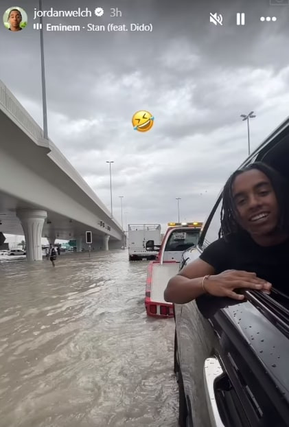Jordan Welch, một YouTuber bị mắc kẹt trong chiếc Rolls Royce của mình ở Dubai, cho biết: "Chiếc Rolls Royce ngập trong nước. Chúng tôi đang mắc kẹt giữa đường phố Dubai".