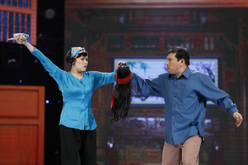 Hai danh hài vào vai một cặp vợ chồng trong tiểu phẩm 'Đặt tên cho con' của Gala Cười 2015.