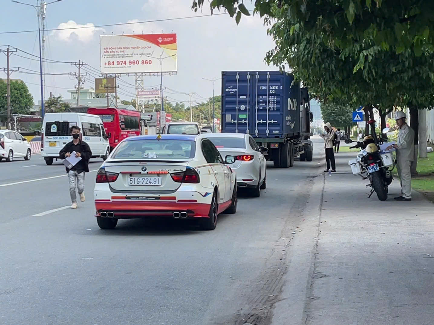 Theo ghi nhận của PV, vào sáng cùng ngày, trong lúc các phương tiện đang di chuyển trên quốc lộ 13 hướng từ TPHCM đi Bình Dương, khi đến trước siêu thị Aeon Mall Bình Dương (thuộc phường Thuận Giao, TP Thuận An, tỉnh Bình Dương) thì bất ngờ bị CSGT dừng xe, điều tiết di chuyển sát vào lề đường.