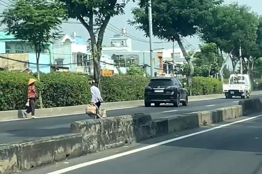 Tình huống hi hữu nêu trên được ghi nhận trên quốc lộ 13, đoạn qua TP Thuận An, tỉnh Bình Dương vào sáng nay (12/4).
