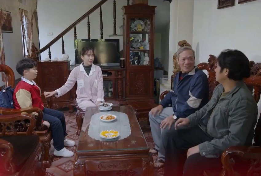 "Bác Tố lát nữa ăn xong đưa Cá Heo đi học giúp mẹ nó nhé. Tuyết (Kiều My) lát nữa vắt mấy quả cam cho chị Son", ông Công nói. Tuyết - em dâu Son tiếp lời: "Chị Son phải quen dần với việc này đi. Cả nhà ai cũng lo lắng cho chị. Từ trước tới nay việc gì cũng đến tay chị rồi. Bây giờ chị phải để mọi người chuộc lỗi nhé".