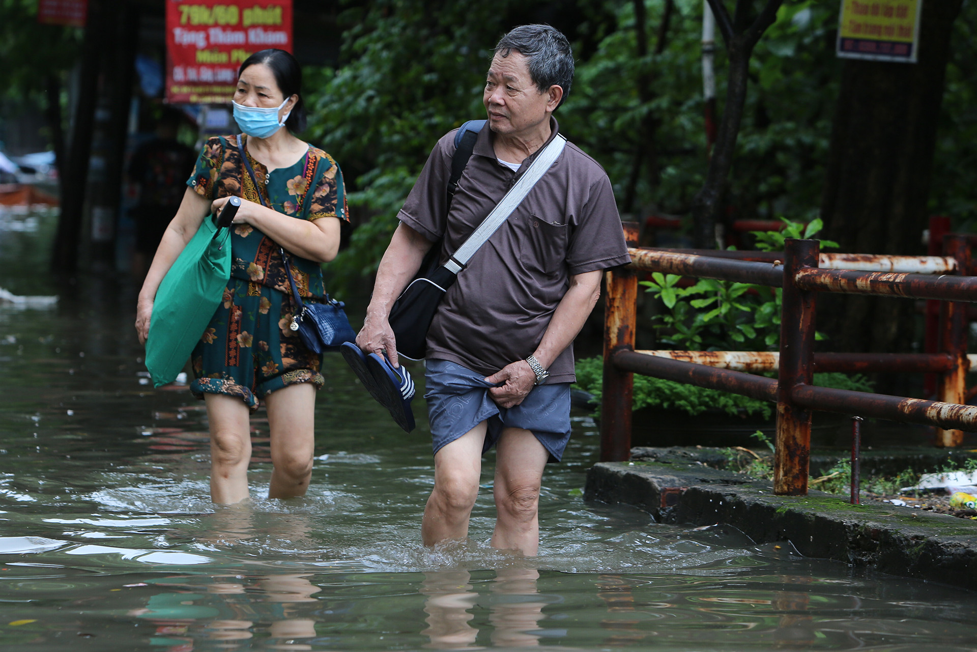 Ông Nguyễn Duy Hùng (Thanh Trì, Hà Nội) cho biết, do nước ngập sâu nên xe máy không thể đi được, một số ô tô con đã bị chết máy giữa đường.