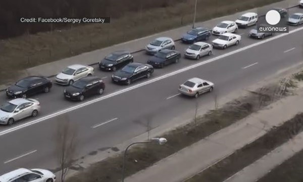 Để tránh tắc đường trên cao tốc, một tài xế Kiev đã đi sang đường ngược chiều và cho xe chạy lùi với tốc độ cao.