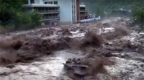 Lũ lụt gây ra bởi mưa lớn đã cuốn trôi nhiều đoạn đường cao tốc tại Tây Tạng, Trung Quốc.