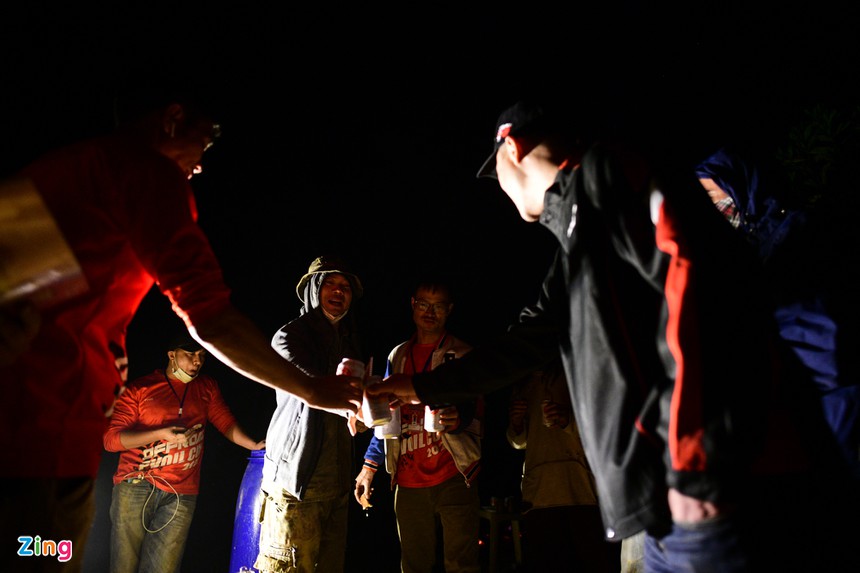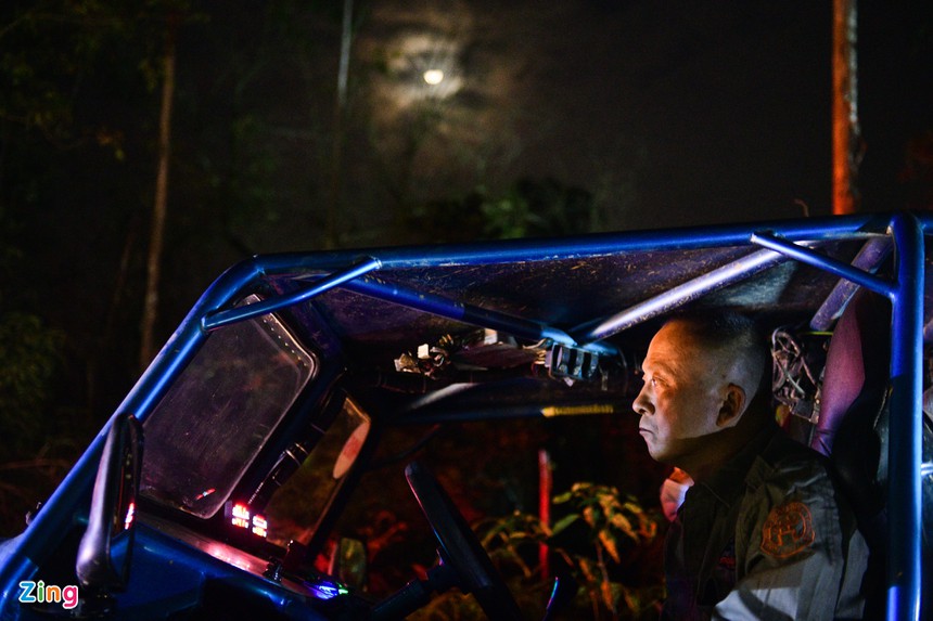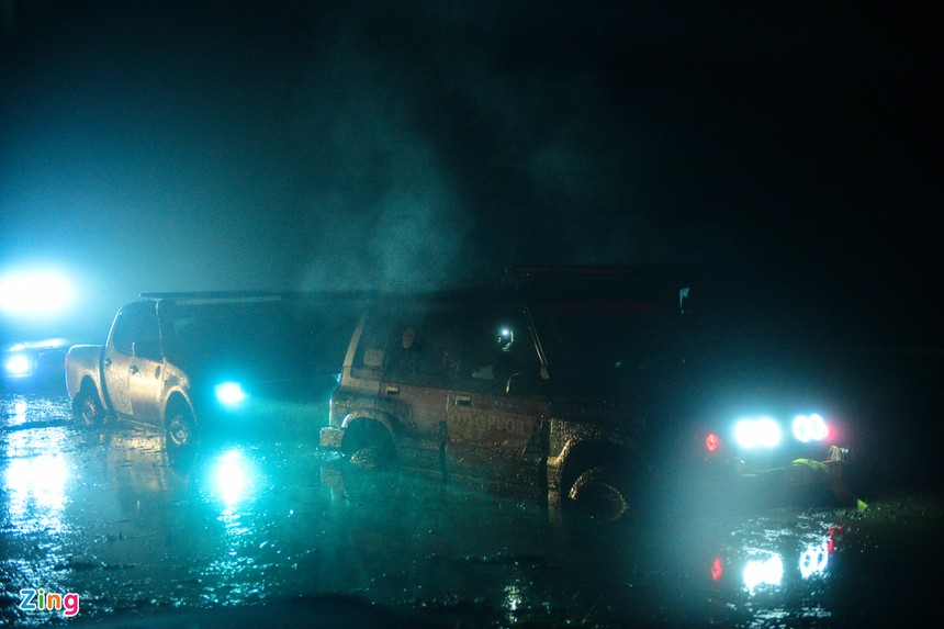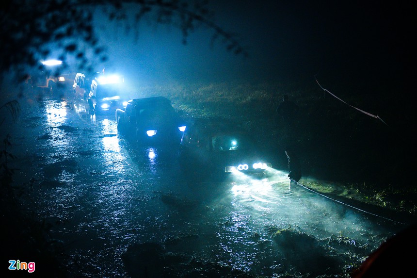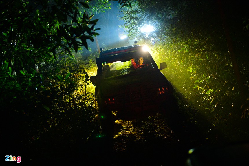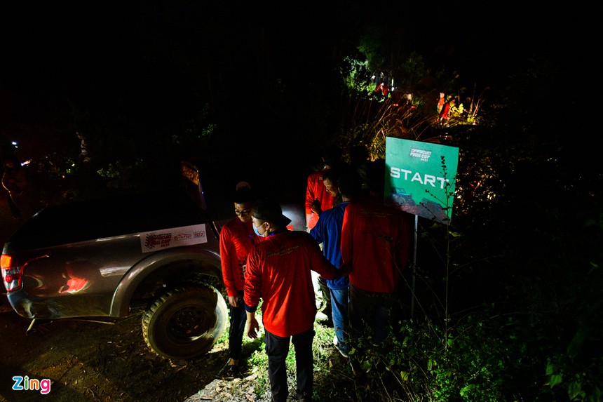 19h45, trời tối đen như mực. Đoàn xe địa hình xếp thành hàng dài, có chiếc đi theo cổng vào chỉ dẫn của ban tổ chức, có đội tự mở đường để rút ngắn thời gian chờ đợi. Ánh sáng duy nhất trong hành trình này là đèn pha ôtô hoặc đèn pin cá nhân.