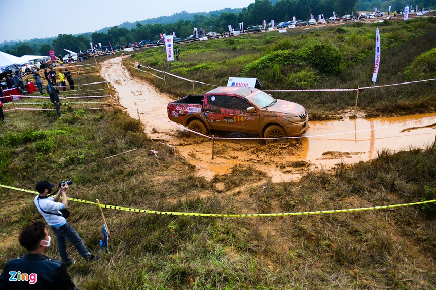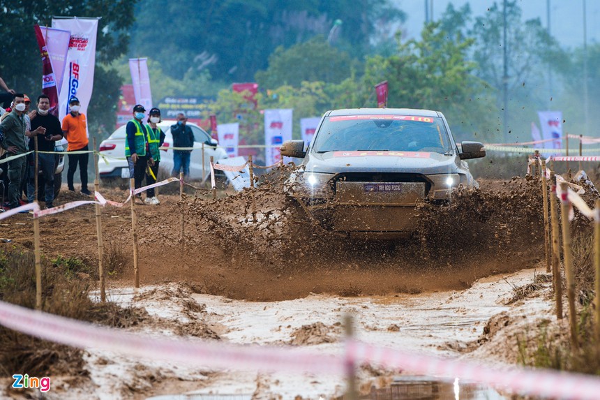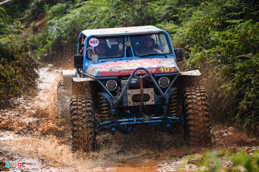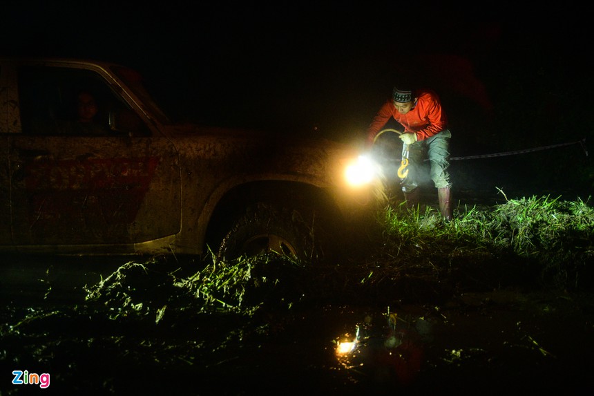 Ngô Mạnh Quân - chã (phụ lái) của xe 405 đáp lại mạch lạc trong bộ đàm. Sau điểm check-in 1, toàn bộ đoàn xe phải đi qua bãi sình lầy để leo lên dốc. Một vài thành viên không ngần ngại lội xuống chỉ dẫn đường đi cho lái chính. Bùn ngập quá đầu gối họ, bắn tung tóe mỗi lần xe vào ga.