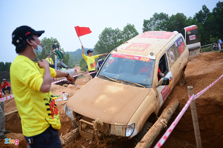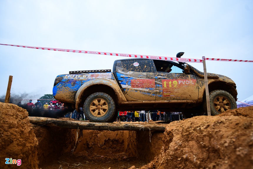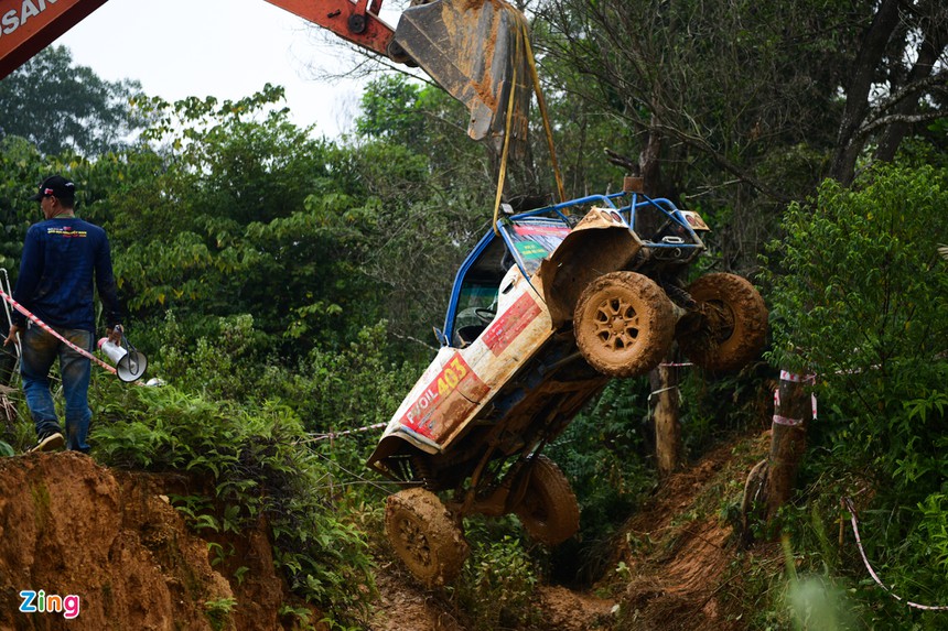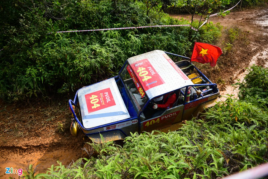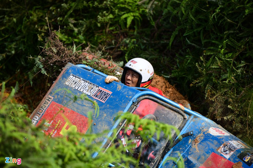 Nước tràn vào trong, xe chết máy, thụt hố, vỡ kính, hỏng đèn... là hàng loạt những khó khăn các VĐV gặp phải suốt 8 tiếng trong rừng. Những đội theo sau vừa quan sát bản đồ, vừa lần theo vết xe, vết bùn mà những đội đi trước để lại.