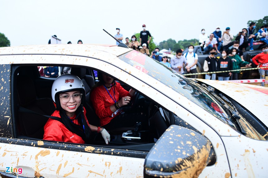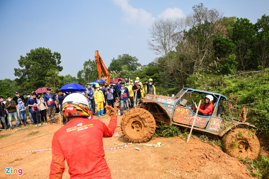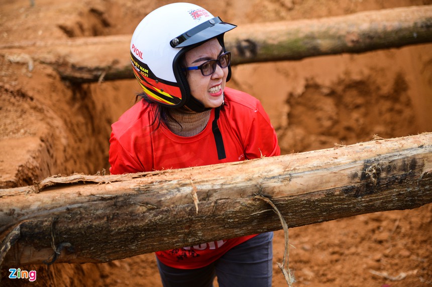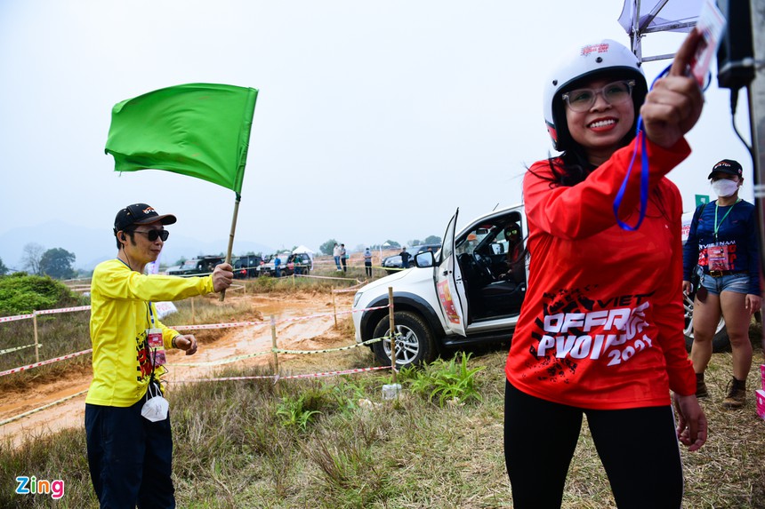 "Tuy là phái nữ nhưng chúng tôi không ngại khó. Tôi tham gia đua xe địa hình vừa để thỏa mãn đam mê, cũng là để lan tỏa đam mê ấy đến với những chị em phụ nữ khác", chị Trần Thị Thanh Nga - VĐV xe 123 chia sẻ trước khi đưa ôtô vào đường đấu.