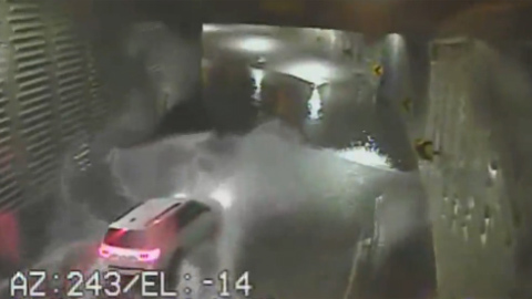 Camera an ninh ghi lại cảnh chiếc ô tô lao xuống một đường hầm ngập nước ở Houston, Texas, Mỹ.