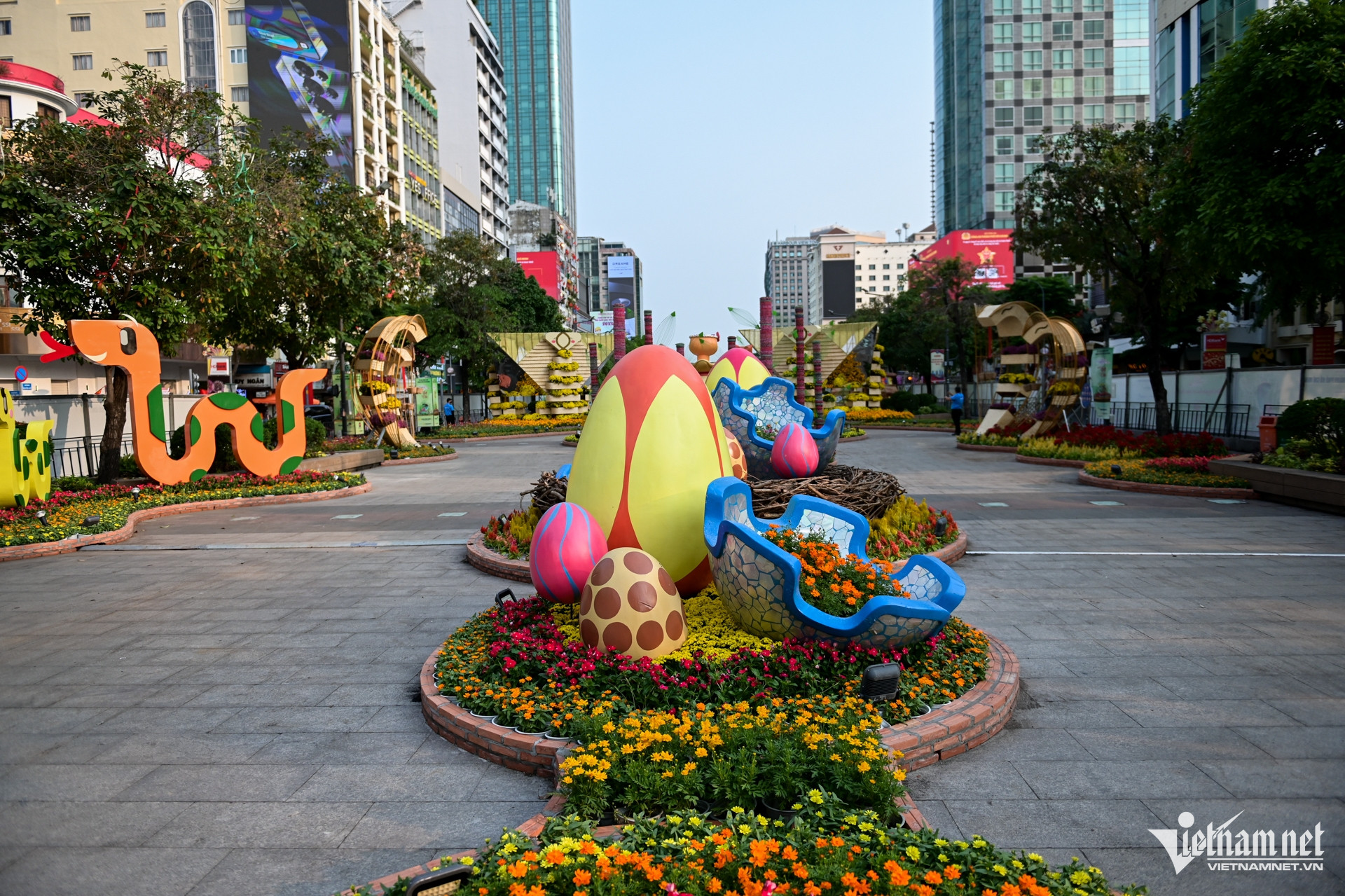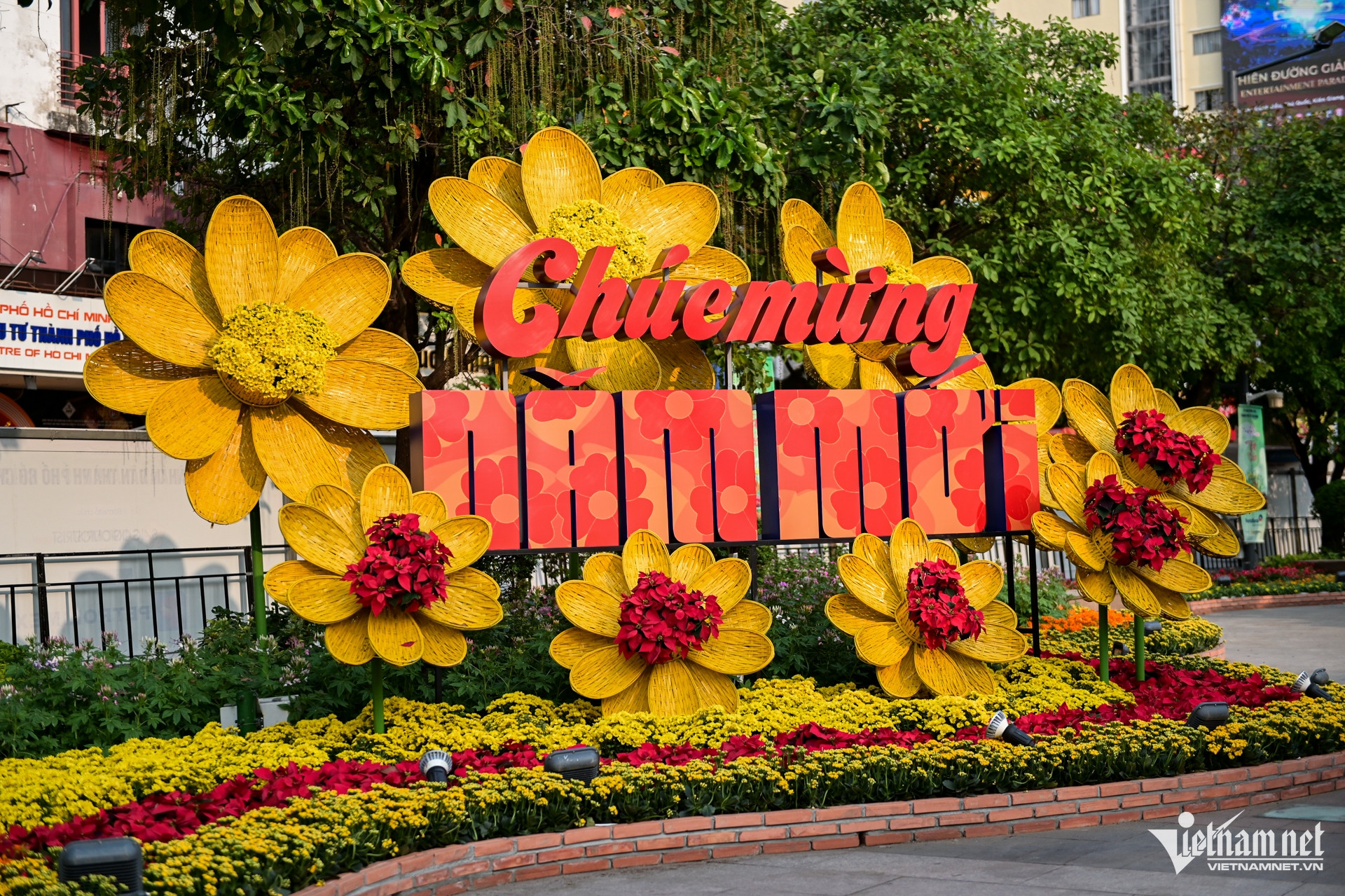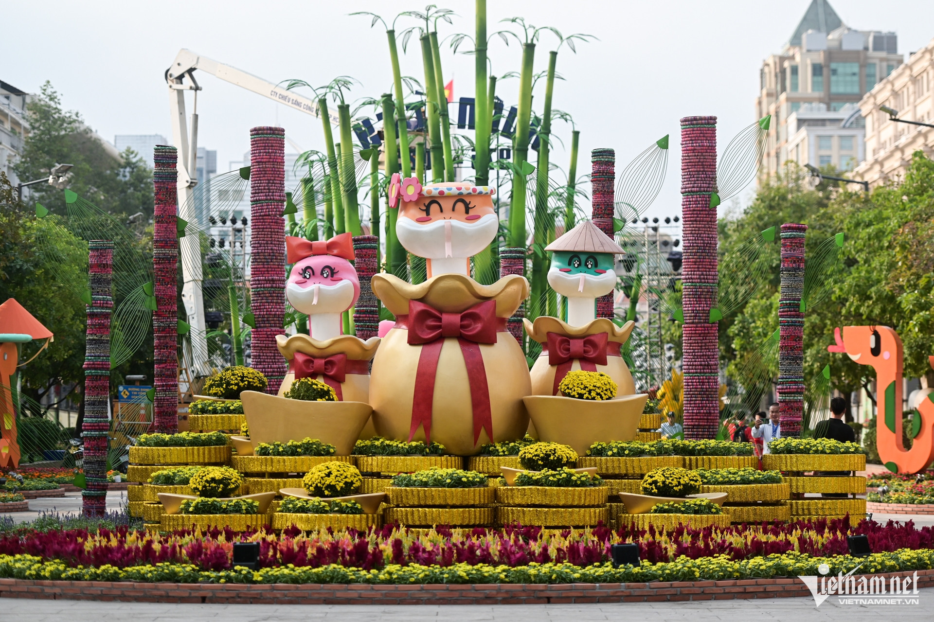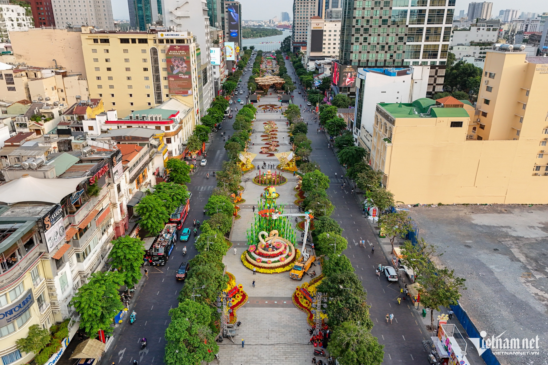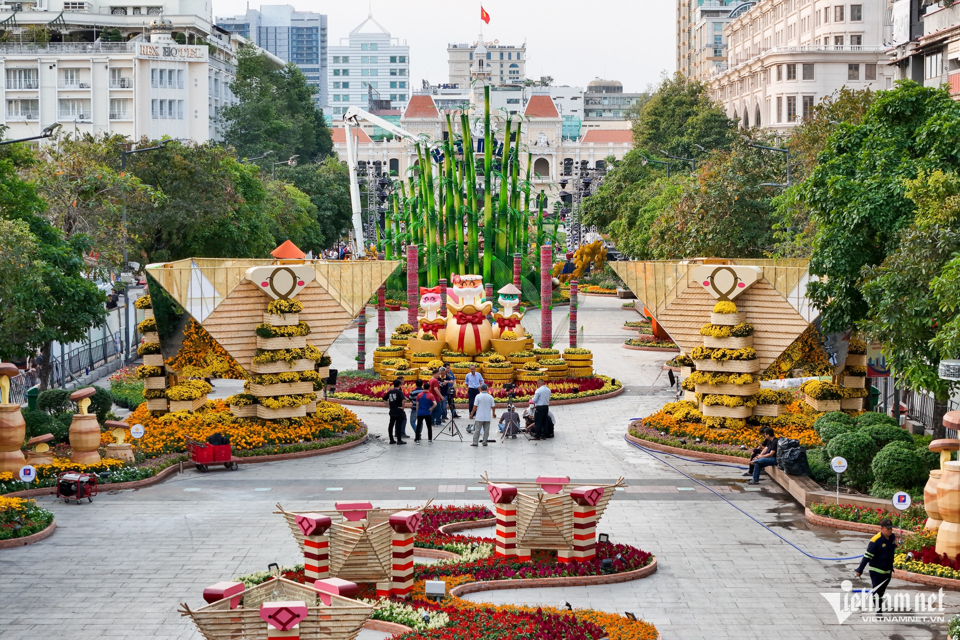 Sau nửa tháng thi công, đường hoa Nguyễn Huệ với chủ đề “Non sông gấm hoa, vui xuân thái hòa” đã hoàn thành hơn 80% các hạng mục. Công trình sẽ mở cửa phục vụ nhu cầu du xuân, thưởng ngoạn của người dân TPHCM và du khách từ 19h ngày 27/1 (tức 28 Tết) đến 21h ngày 2/2 (mùng 5 Tết).