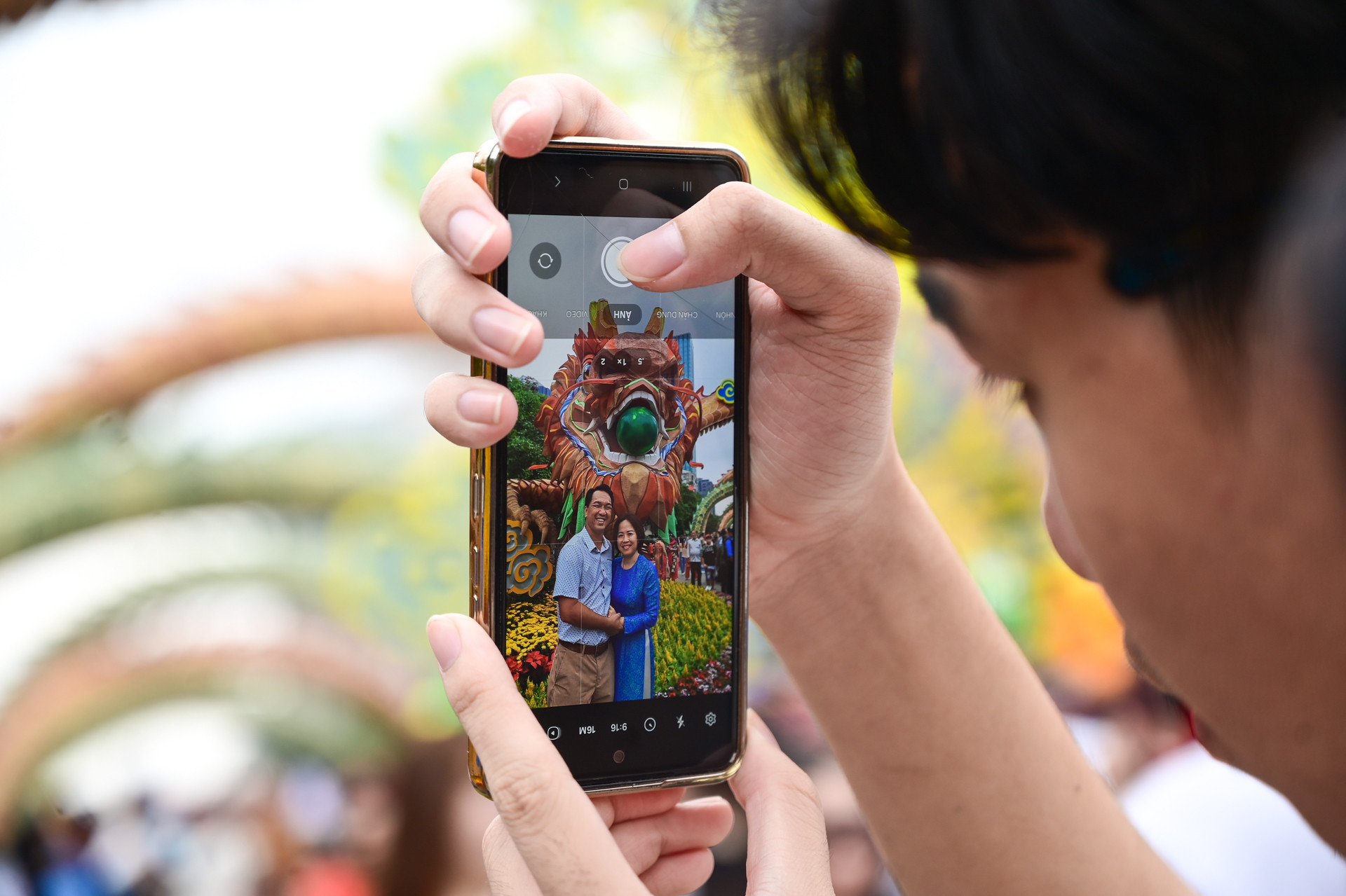 Đây là năm đầu tiên anh Lim cùng gia đình ở TP.HCM trong dịp Tết cổ truyền Việt Nam. Người đàn ông ngoại quốc bất ngờ với các hoạt động sôi nổi và khung cảnh rực rỡ ở đây.