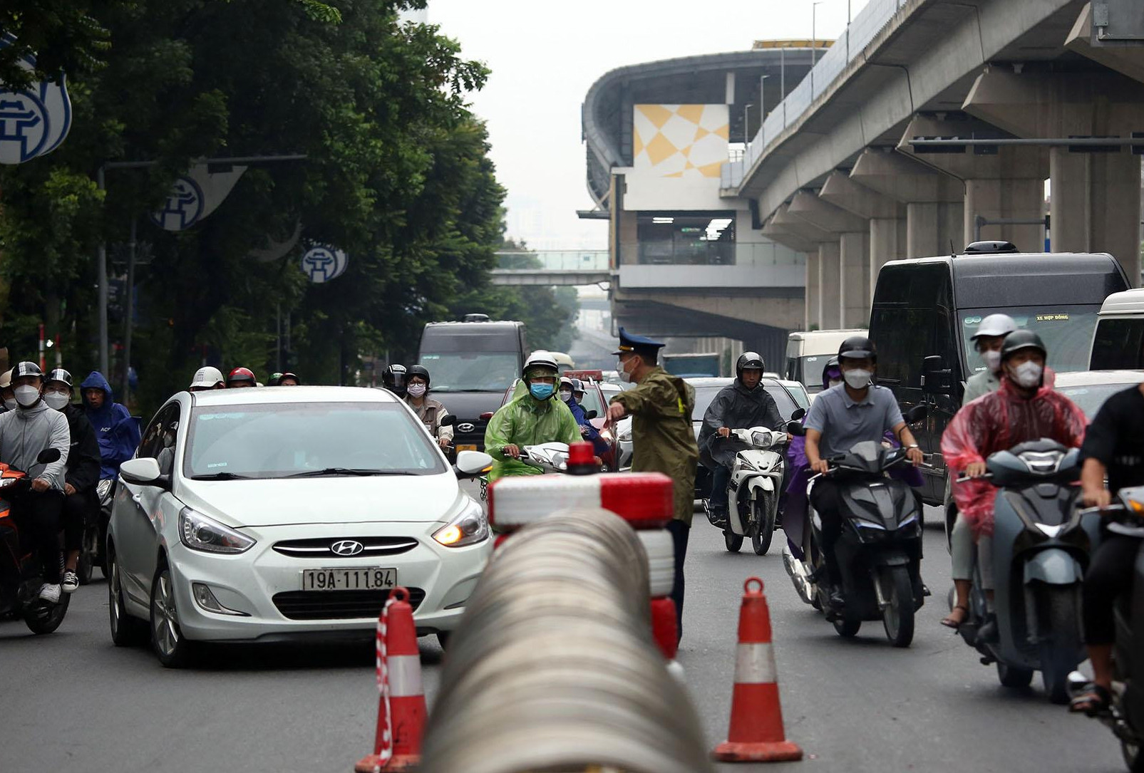 Dòng phương tiện nhích từng mét qua 'nút thắt' rào đường Nguyễn Trãi