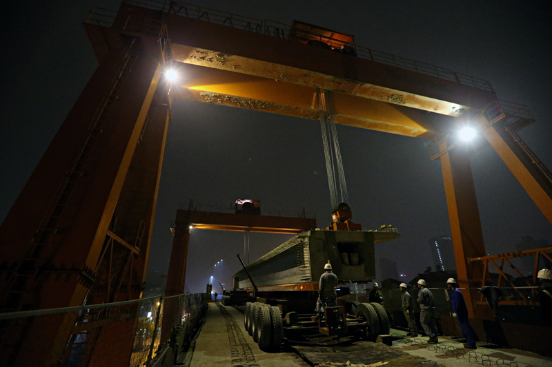 22h ngày 20/1, “xe khủng” đã vận chuyển những phiến dầm đúc sẵn từ đường Tố Hữu về khu vực hồ Hào Nam (Đống Đa, Hà Nội) để lắp đặt theo thiết kế. Đơn vị trực tiếp thi công lắp dầm là nhà thầu của Trung Quốc.