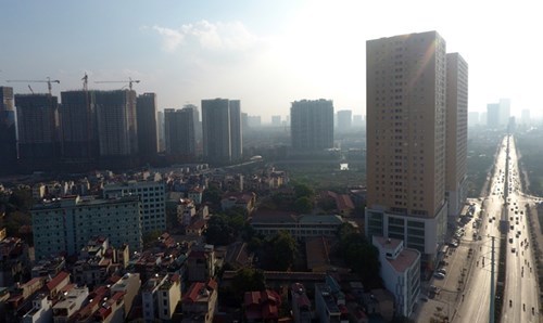Các tòa nhà đang trong thời gian xây dựng và hoàn thiện trên đoạn đường Lê Văn Lương kéo dài - Hà Nội. Ảnh: Anh Tuấn. |