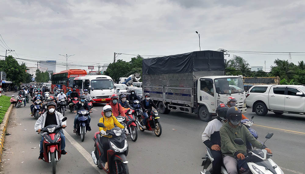 Trên quốc lộ 1, đoạn từ ngã tư Lương Phú đến ngã ba Trung Lương và quốc lộ 60 đoạn trong nội đô TP Mỹ Tho cũng bị ùn ứ nghiêm trọng do lượng xe đổ về quá đông.