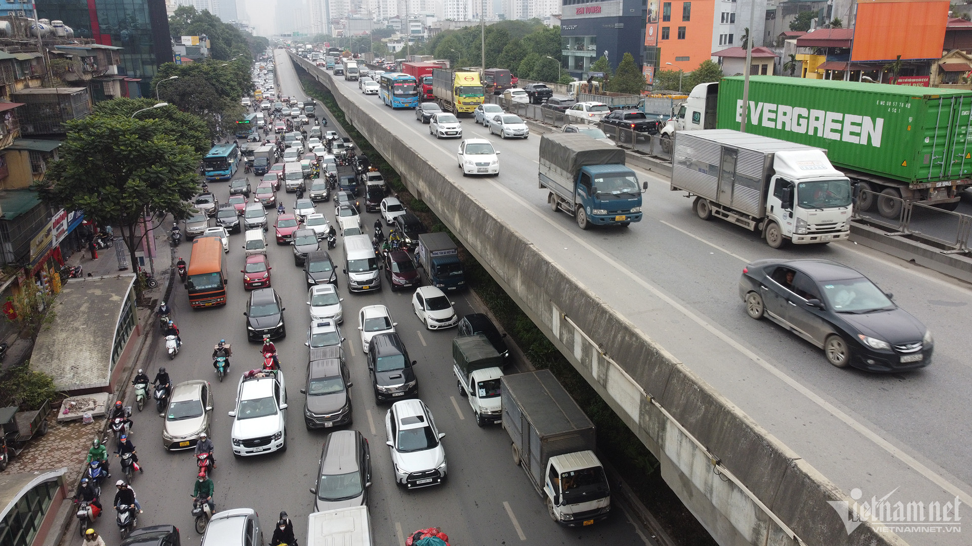 Từ 10h sáng ngày 3/2 (24 tháng Chạp), lưu lượng phương tiện gia tăng đột biến trên tuyến đường Vành đai 3 trên cao ở Hà Nội. Dòng ô tô xếp từ 2 - 3 hàng kéo dài nhiều cây số trên tuyến đường này.