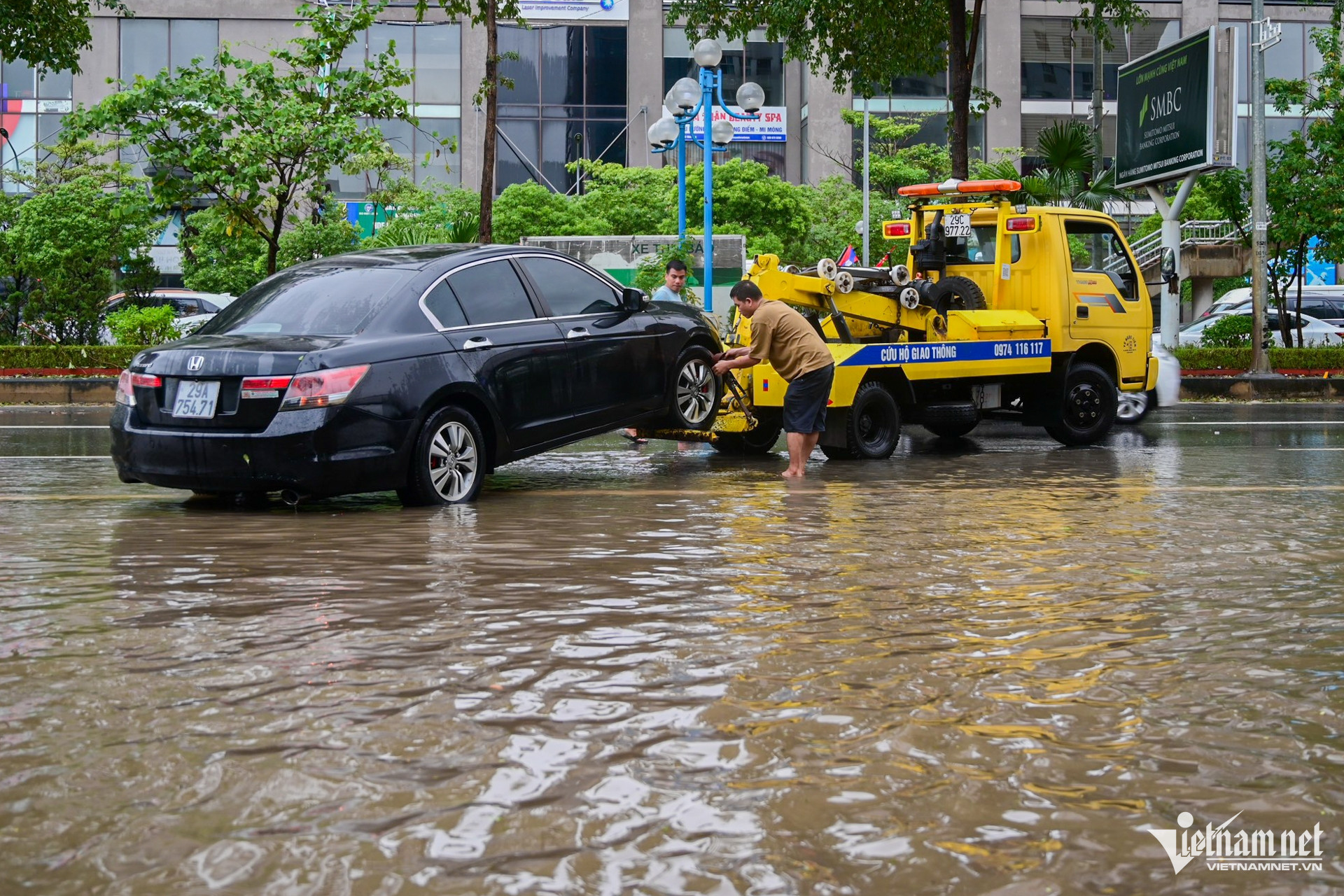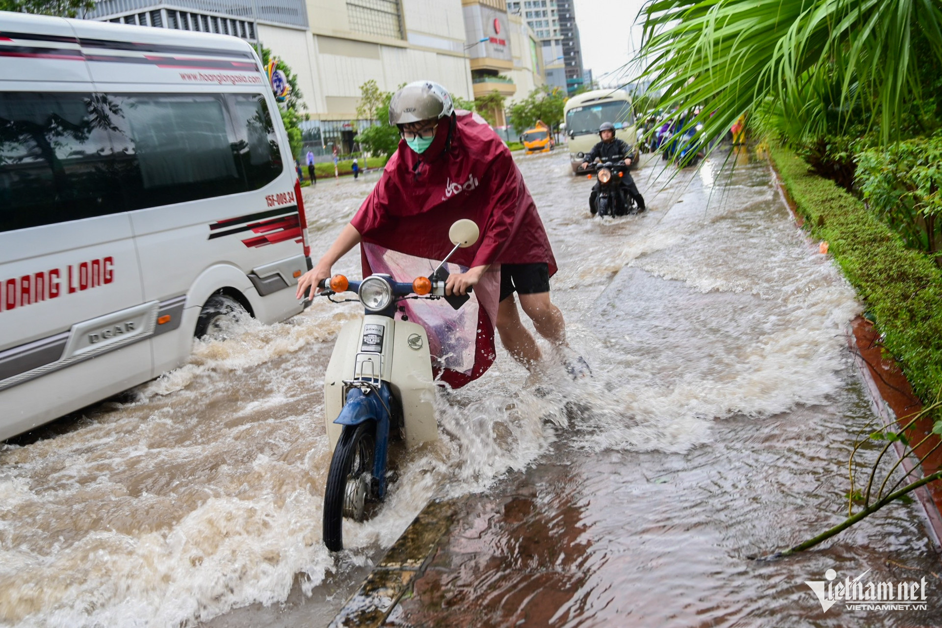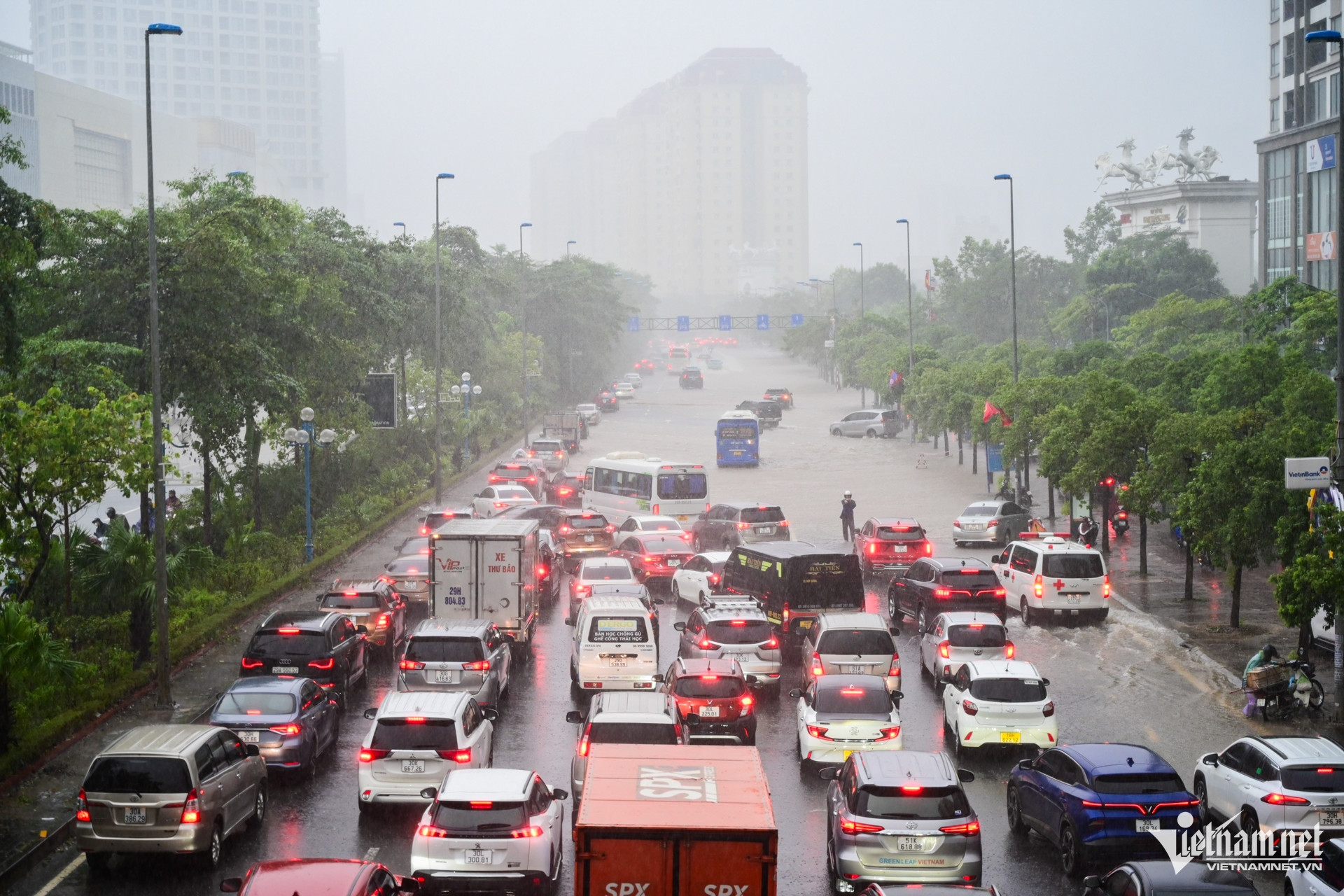 Các phương tiện phải di chuyển sát lề đường để tránh các vùng nước ngập sâu.