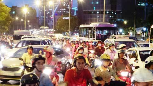 Tối 24/4, lực lượng chức năng tiến hành phong tỏa nhiều tuyến trung tâm để diễn tập mít tinh lễ 30/4 đã khiến giao thông ở nhiều khu vực ùn tắc nghiêm trọng. Hàng ngàn người dân TPHCM phải vật vã trên những tuyến đường để về nhà.