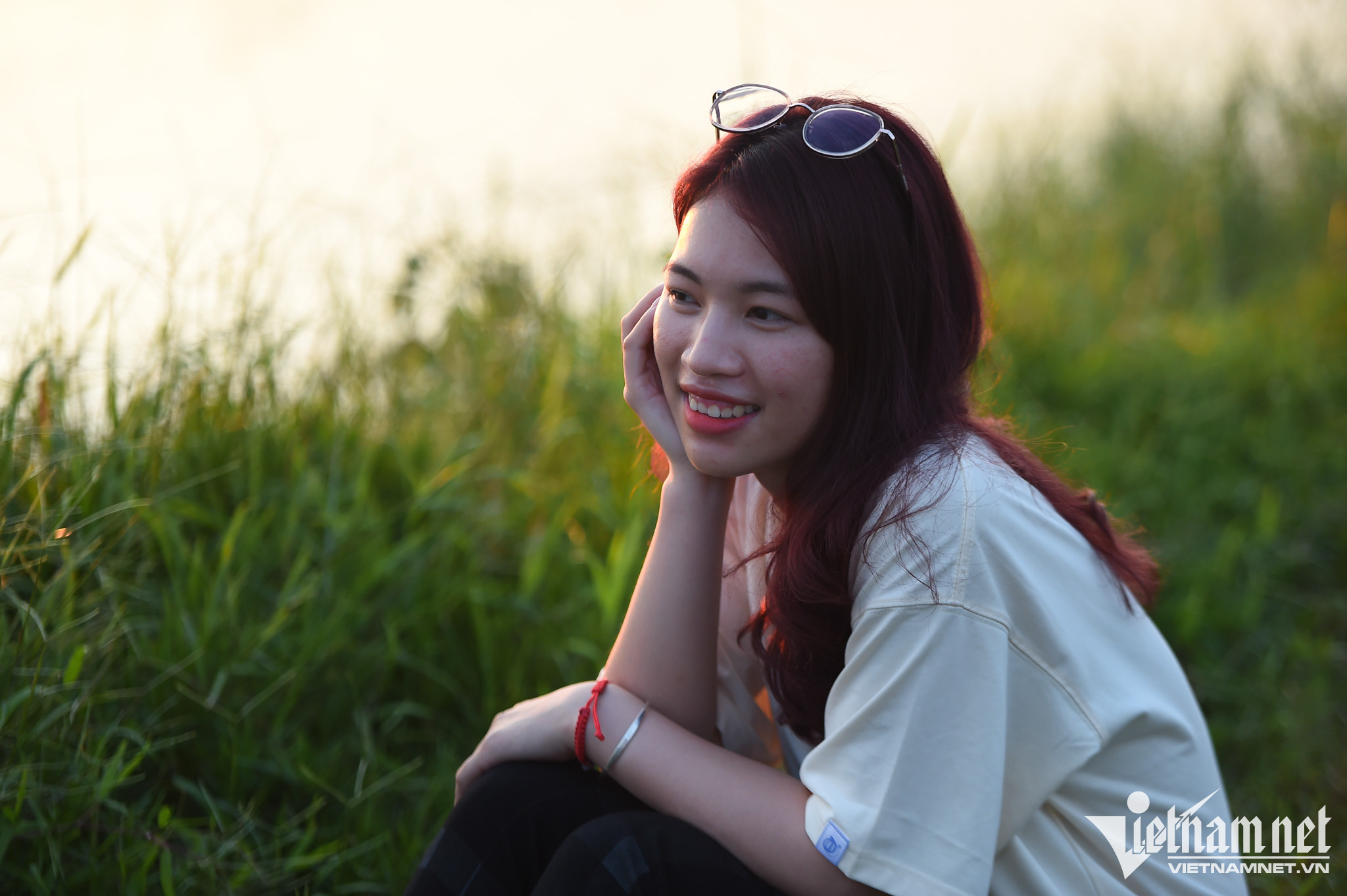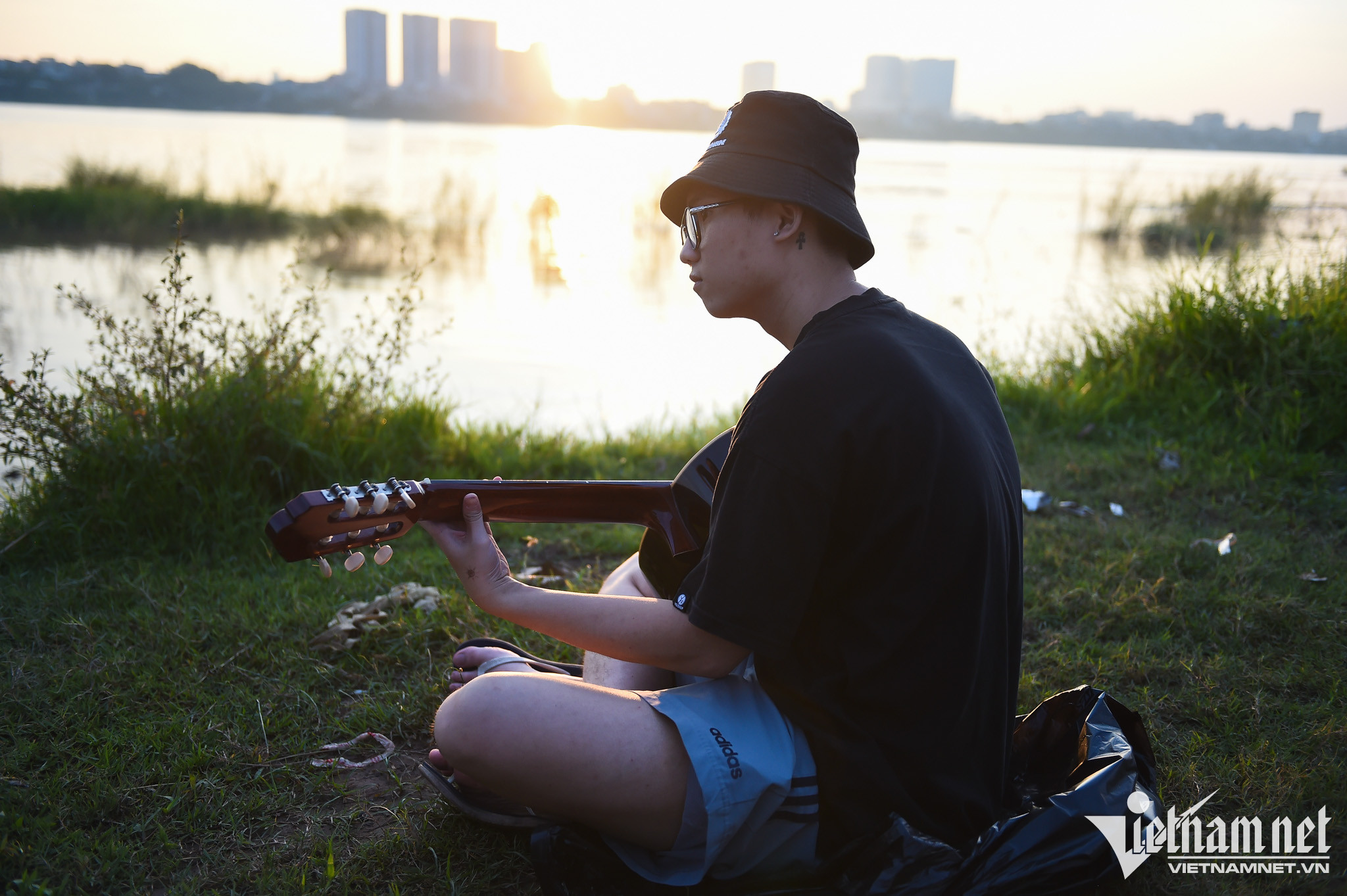 Một vài bạn trẻ mang theo đàn guitar, chậm rãi tận hưởng nắng chiều mùa thu Hà Nội.