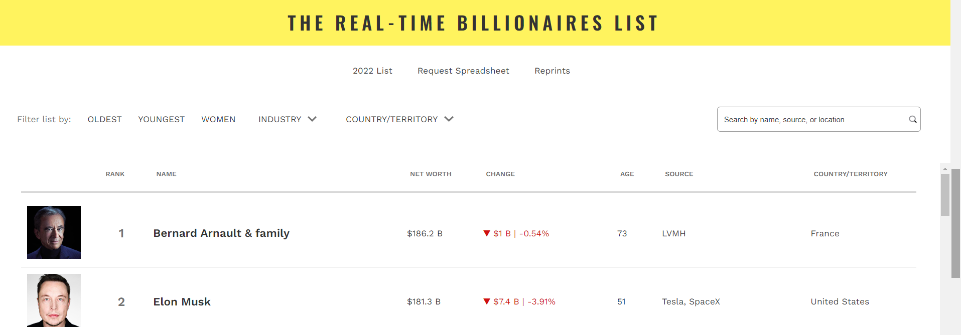 Trong một năm chứng khoán sụt giảm, cổ phiếu LVMH chỉ mất 1,5% giá trị. Do biến động của thị trường chứng khoán, vài ngày trước, Musk cũng bị Arnault soán ngôi trong khoảnh khắc trước khi lấy lại vị trí của mình. Khi đó, tài sản của Arnault là 186,2 tỷ USD còn Musk là 185 tỷ USD.