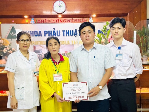 Sau khi Phòng CTXH Bệnh viện Việt Đức kết nối Báo VietNamNet chia sẻ, Nam đã nhận được nhiều sự giúp đỡ từ cộng đồng. Số tiền 222.379.608 đồng do bạn đọc ủng hộ đã được báo VietNamNet trao đến tận tay gia đình.