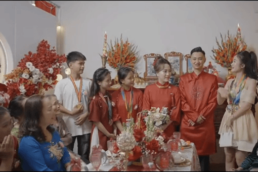 Nhìn loạt huy chương võ thuật của dàn em vợ, chú rể liên tục lau mồ hôi, còn quan khách hai bên thì bật cười vui vẻ.