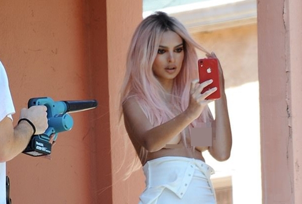 - Emily Ratajkowski khoe trọn cơ bụng săn chắc khi diện áo quây cùng chân váy dài màu trắng nổi bật.