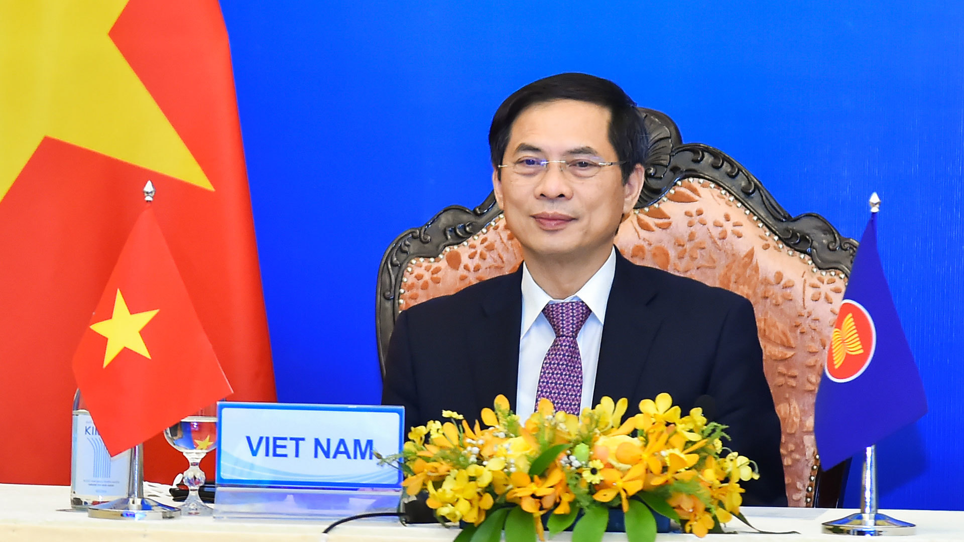Phát biểu tại hội nghị, Bộ trưởng Ngoại giao Bùi Thanh Sơn đề nghị EU hỗ trợ ASEAN tiếp cận vắc xin kịp thời và đầy đủ, xem xét chuyển giao công nghệ sản xuất vắc xin và nâng cao tự cường, tự chủ vắc xin tại khu vực.