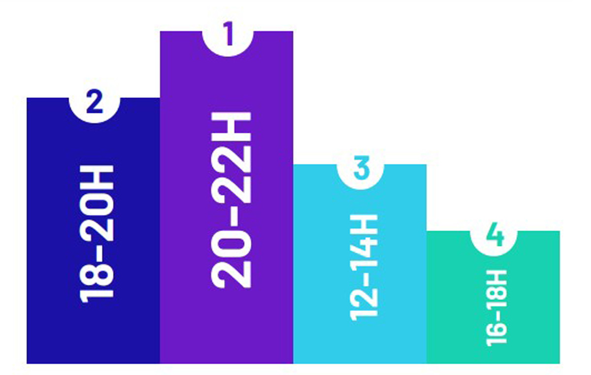 Nghiên cứu cũng chỉ ra rằng, mạng xã hội và nền tảng trò chuyện được dùng thường xuyên hơn trong một số khung thời gian nhất định trong ngày. Các khung thời gian này cũng đi đôi với địa điểm nơi họ dùng các kênh trực tuyến này nhiều nhất: Thư giãn ở nhà sau giờ làm hay giết thời gian vào giờ cơm trưa ở nơi làm việc hoặc trường học.