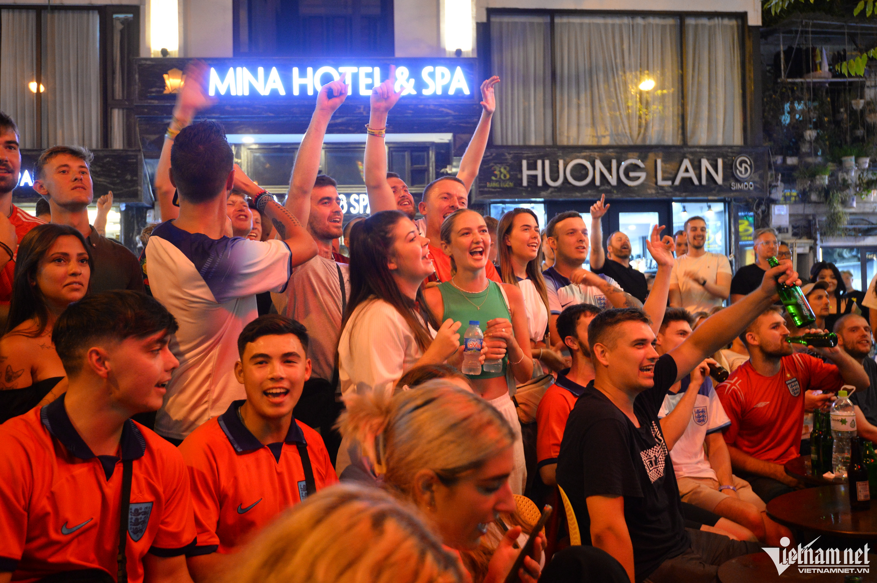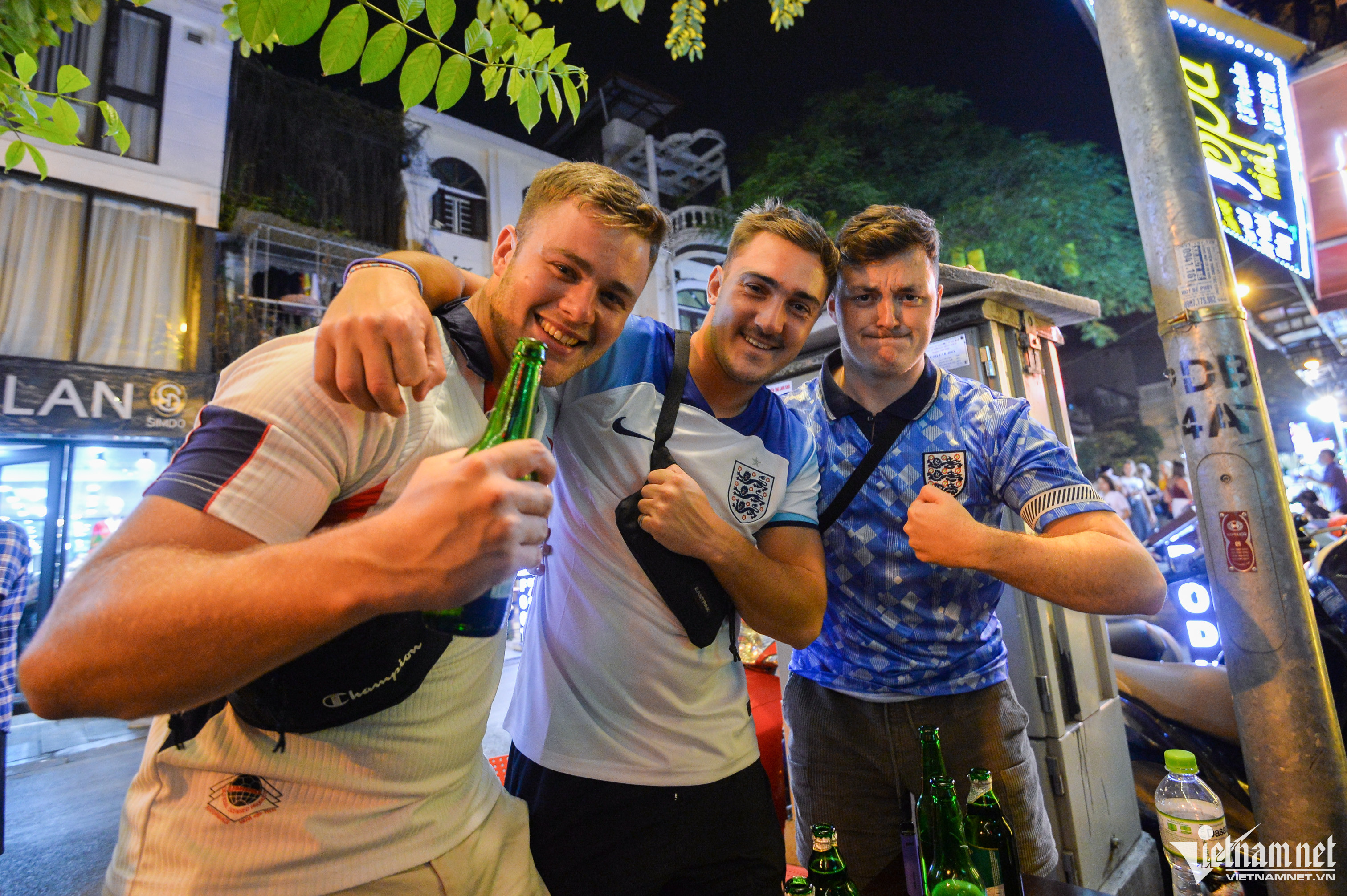 Một quán bia khác trên phố Tạ Hiện thu hút khá đông du khách nước ngoài. Họ hầu hết là người Anh, đã hẹn nhau từ trước để cùng xem trận ra quân của đội bóng quê hương.