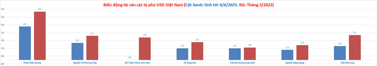 Theo Forbes, các tỷ phú Việt Nam có khối tài sản trị giá 12,6 tỷ USD, "bốc hơi" 8,6 tỷ USD so với năm ngoái.