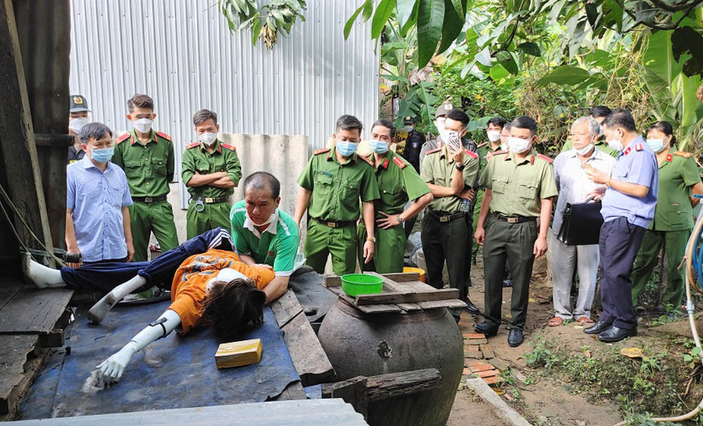 Đến sáng 27/2, Khanh thức dậy, kéo thi thể ông H. ra sau vườn nhà. Sau đó, người dân phát hiện thi thể ông H. nên trình báo công an.