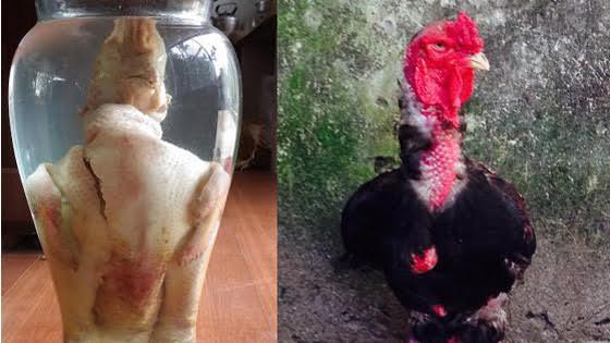 Chú gà Đông Tảo nặng hơn 6kg, có tuổi đời lên tới 5 năm, trị giá tới 60 triệu đồng vừa được chủ nhân hóa kiếp rồi đem đi ngâm rượu vì đã quá già yếu và không thể đi lại được.