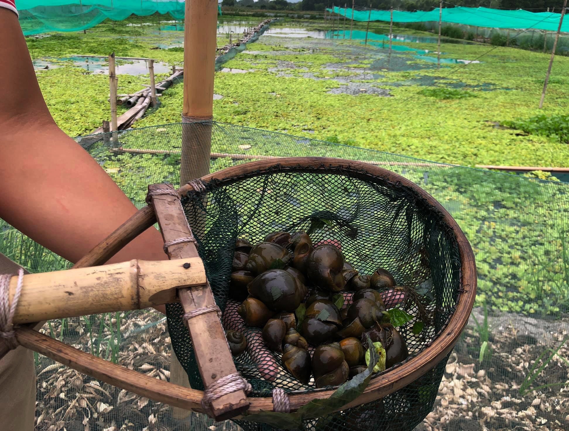 "Để giá cả, chất lượng ổn định, toàn bộ số ốc nhồi nhà tôi đều nuôi theo phương pháp hữu cơ, đạt tiêu chuẩn VietGAP. Thức ăn của ốc chủ yếu là bèo, lá sắn, lá khoai và các loại hoa quả phù hợp", anh thông tin.