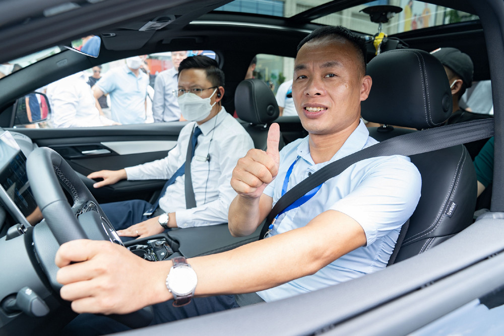 VF 8 trở thành “ngôi sao” của sự kiện. “Xe bốc và êm, ngồi hàng ghế trước cảm giác như lướt phi thuyền. Màn hình nét, nhạy như iPhone. Hàng ghế sau cực rộng, nhất là chiều ngang. VF 8 thực sự là sản phẩm theo tiêu chuẩn toàn cầu”, anh Nguyễn Mạnh Quân, cư dân Vinhomes Ocean Park, nhận xét sau khi bước xuống từ chiếc VF 8.
