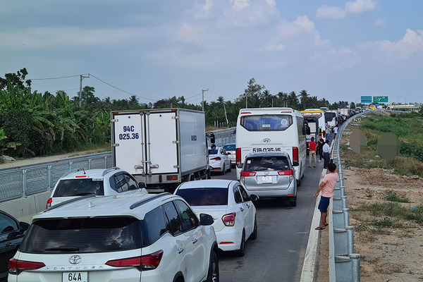 Kẹt xe hàng km trên cao tốc Trung Lương - Mỹ Thuận ngày mùng 3 Tết